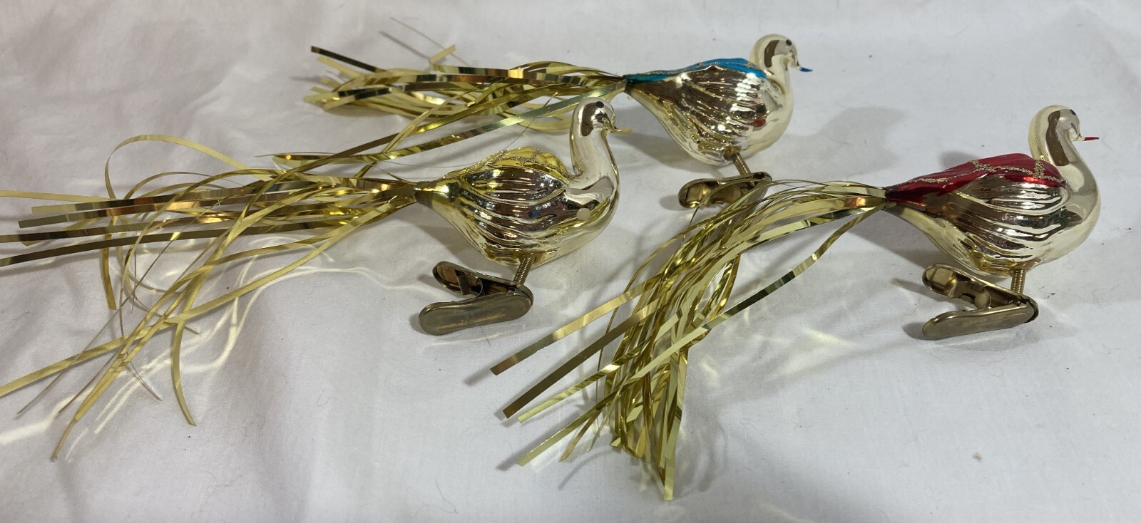 • Vintage Kurt Adler Mercury Glass Peacock Xmas Ornaments Clip-on Gold Tails