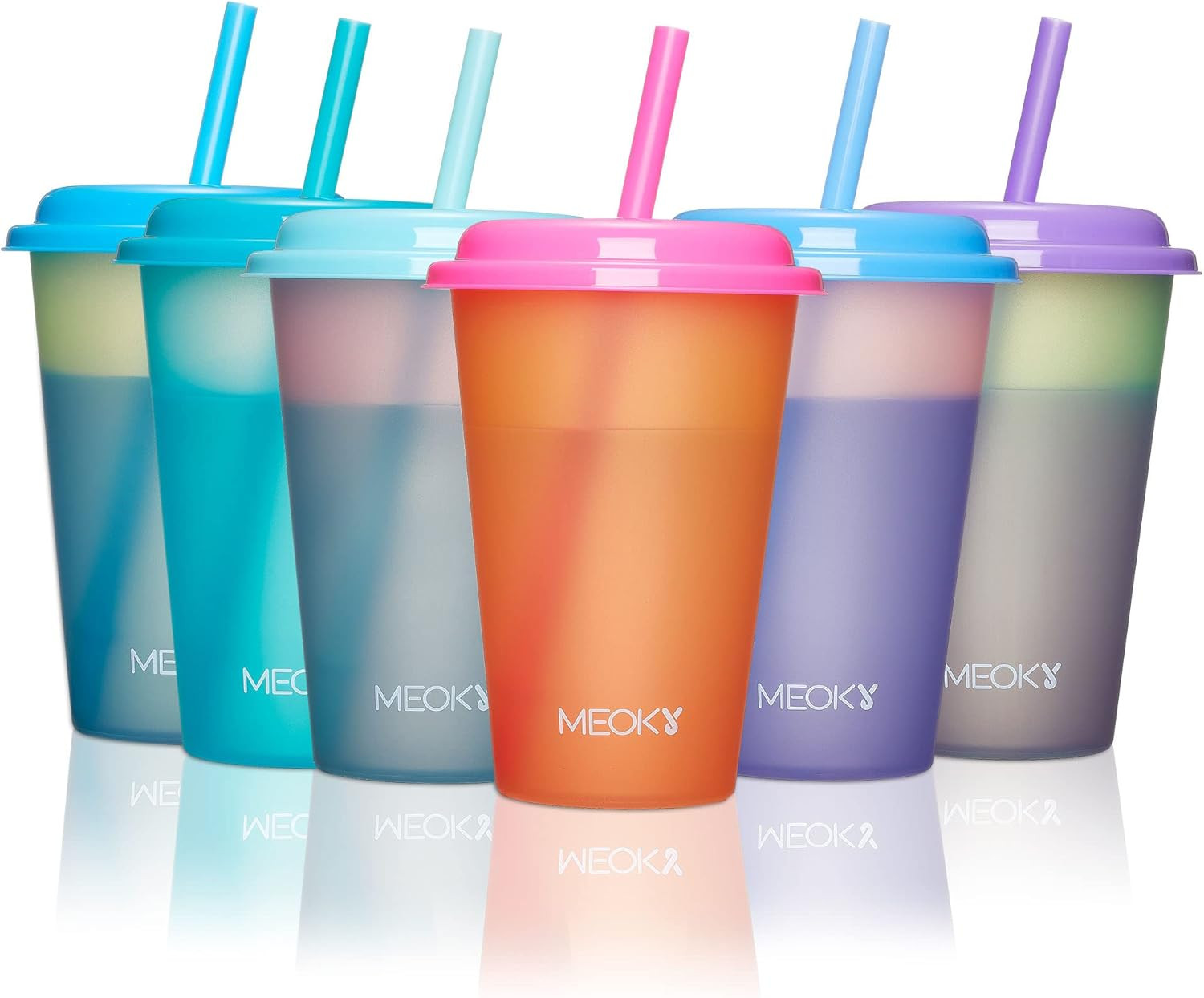 Color Changing Cups with Lids and Straws for Kids 6Pack 12Oz Plastic Reusable Co