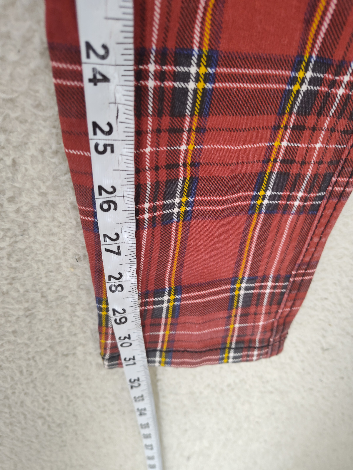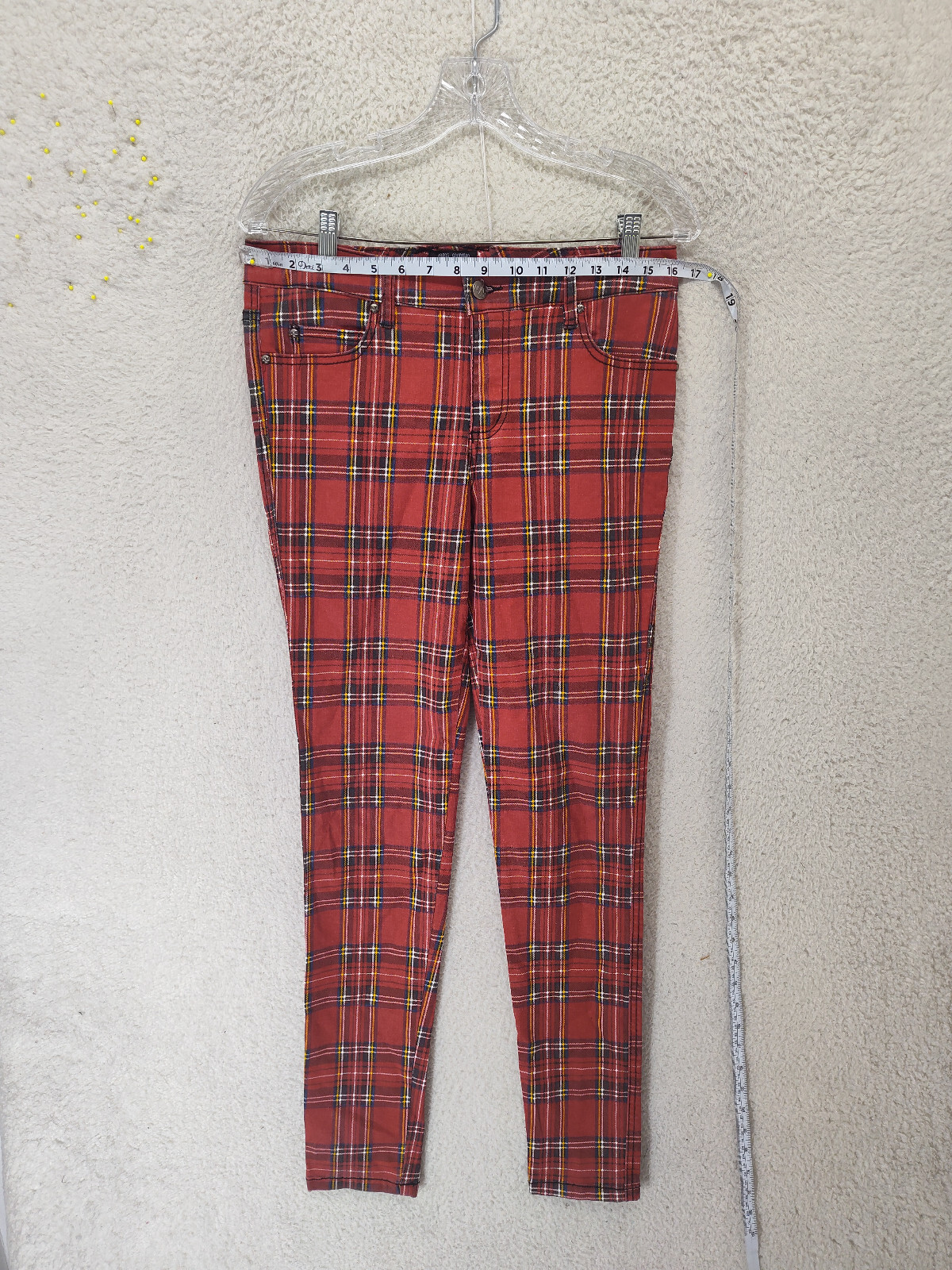 Tripp NYC Daang Goodman Women Pants 29/9 Red Plaid CottonBlend Mid Rise Slim Fit