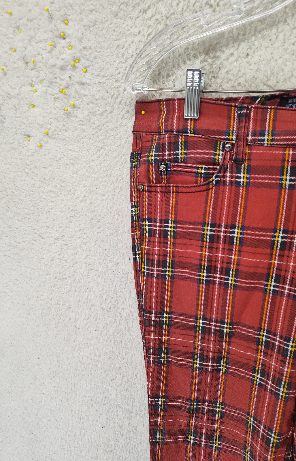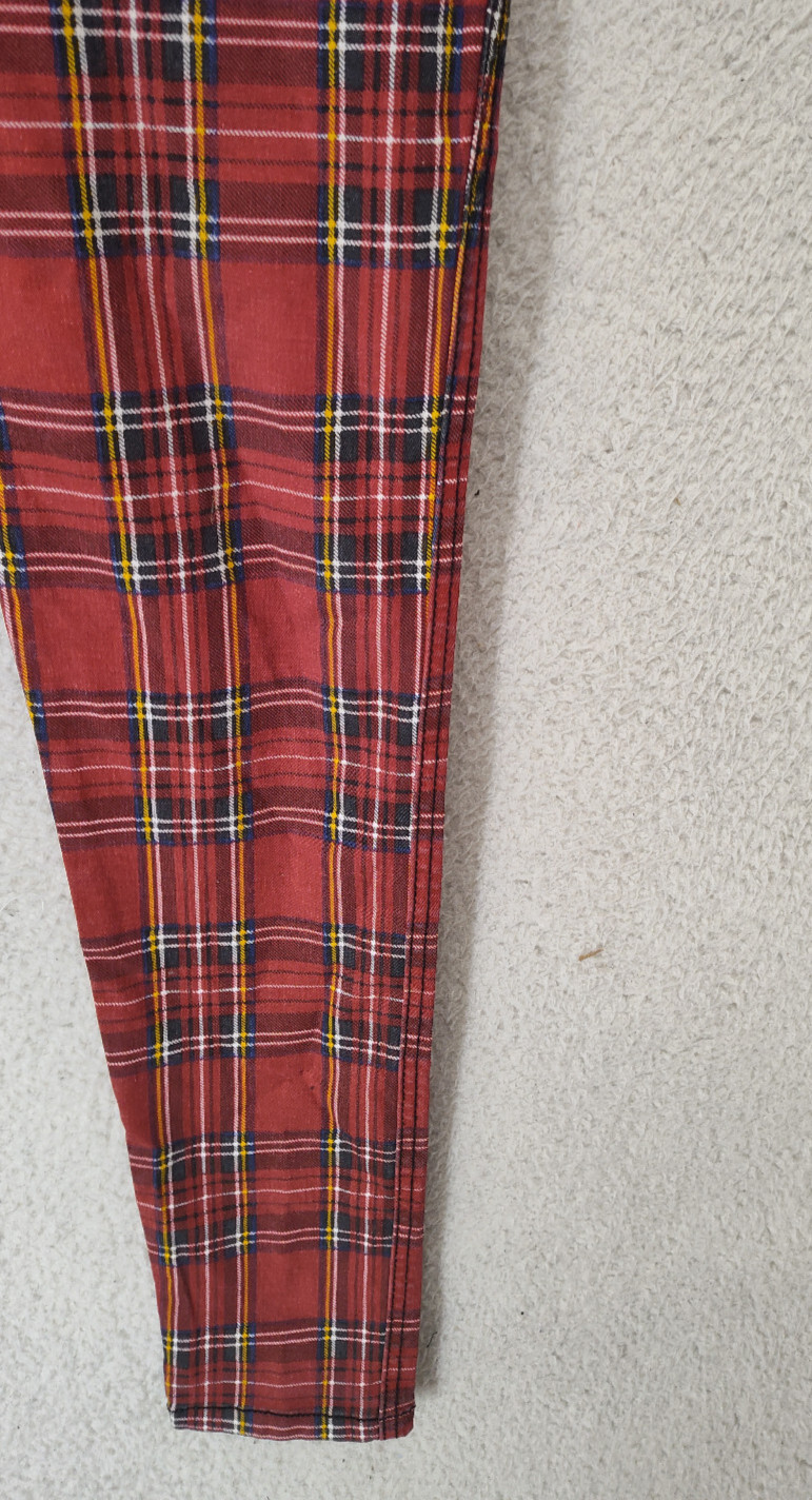 как выглядит Tripp NYC Daang Goodman Women Pants 29/9 Red Plaid CottonBlend Mid Rise Slim Fit фото