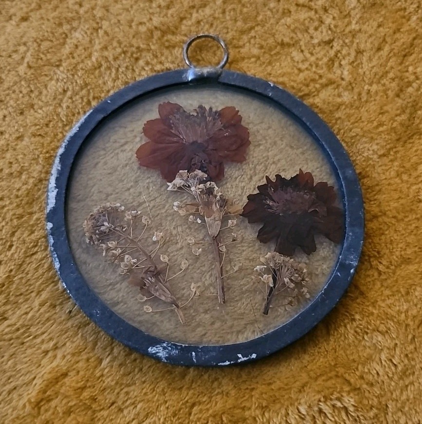 как выглядит Pressed Dried Flowers Oval Beveled Hangable Art Frame 4" Cottagecore Vintage фото