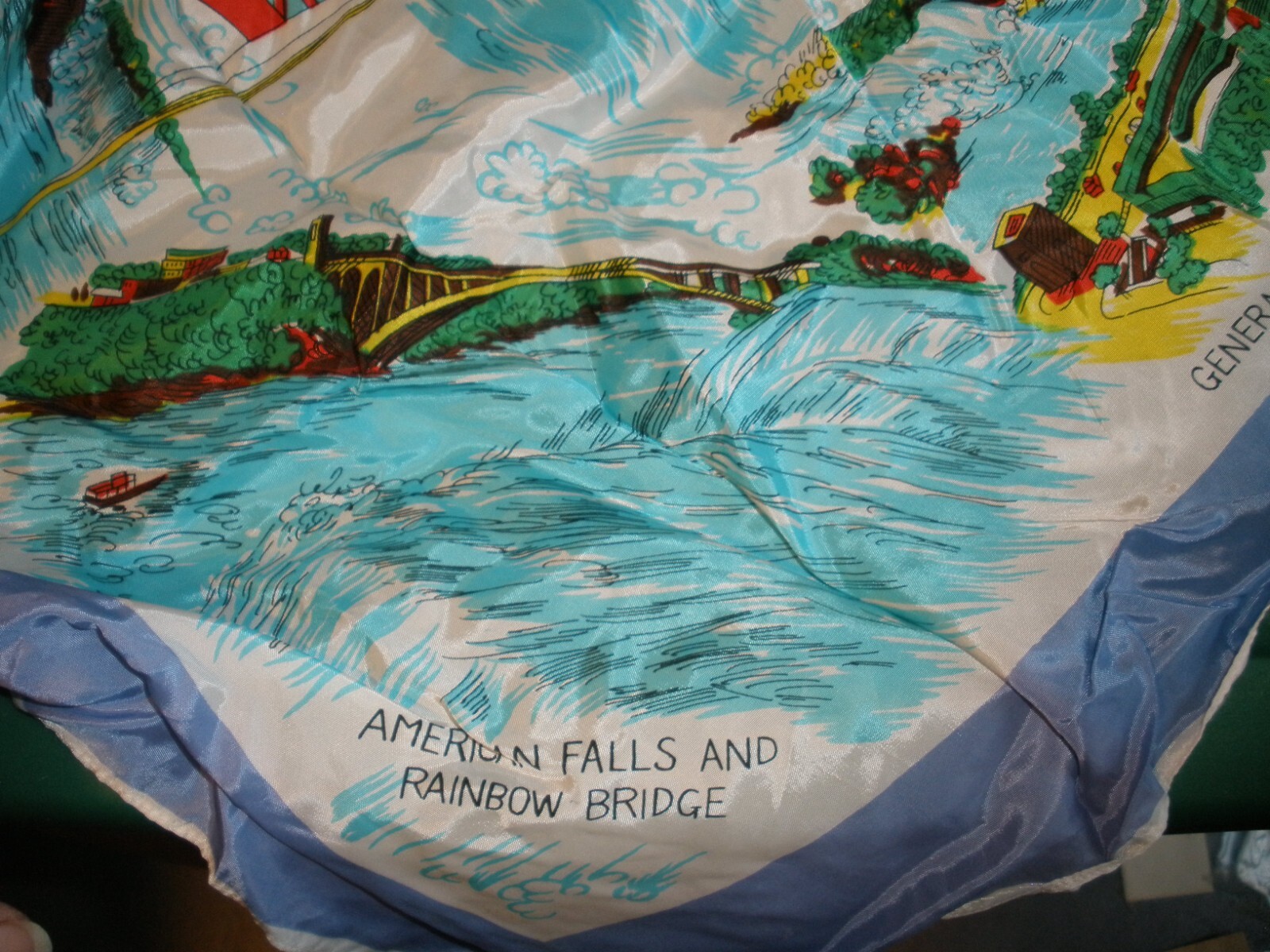 Vintage Scarf NIAGARA FALLS 28x28 M S Rayon Made in Japan