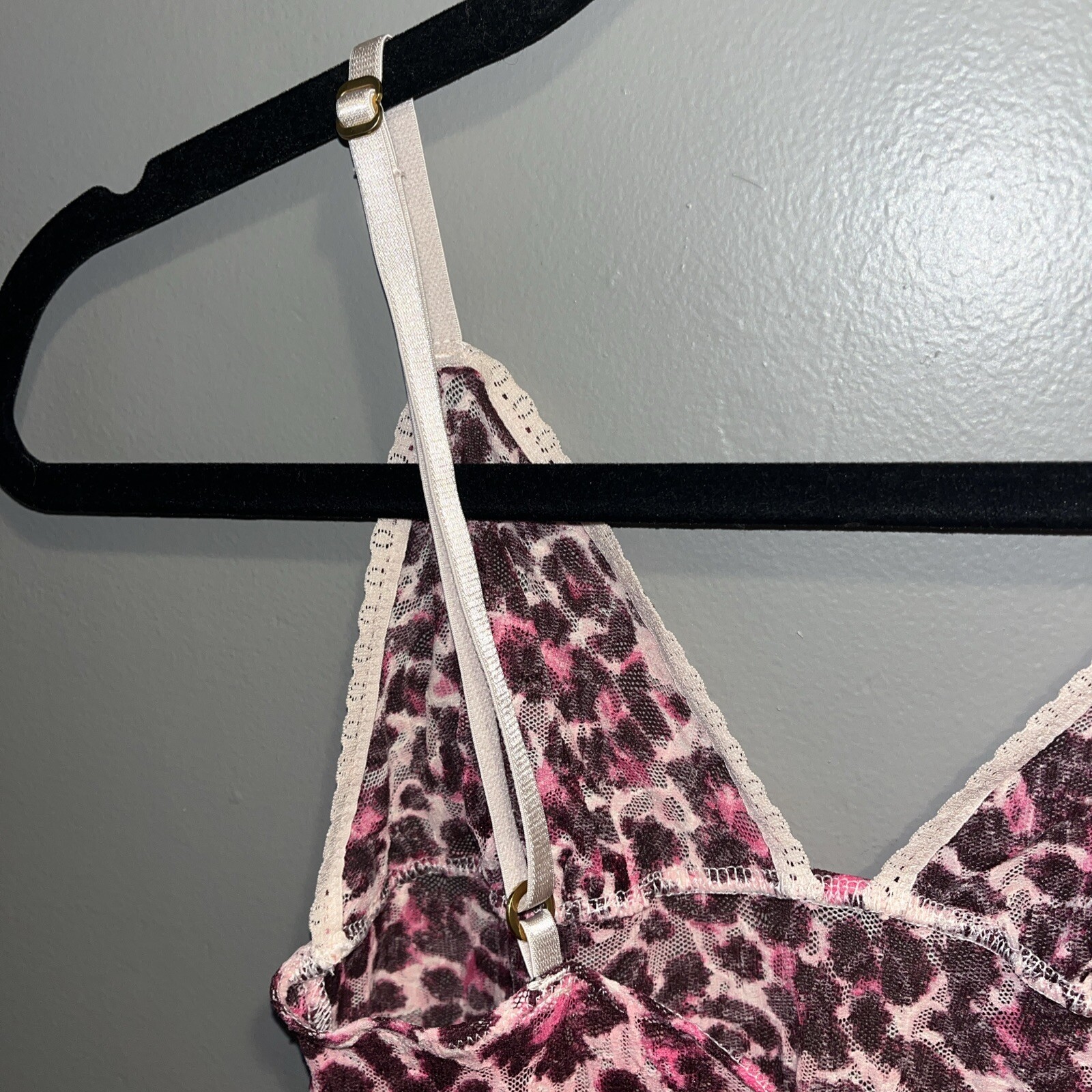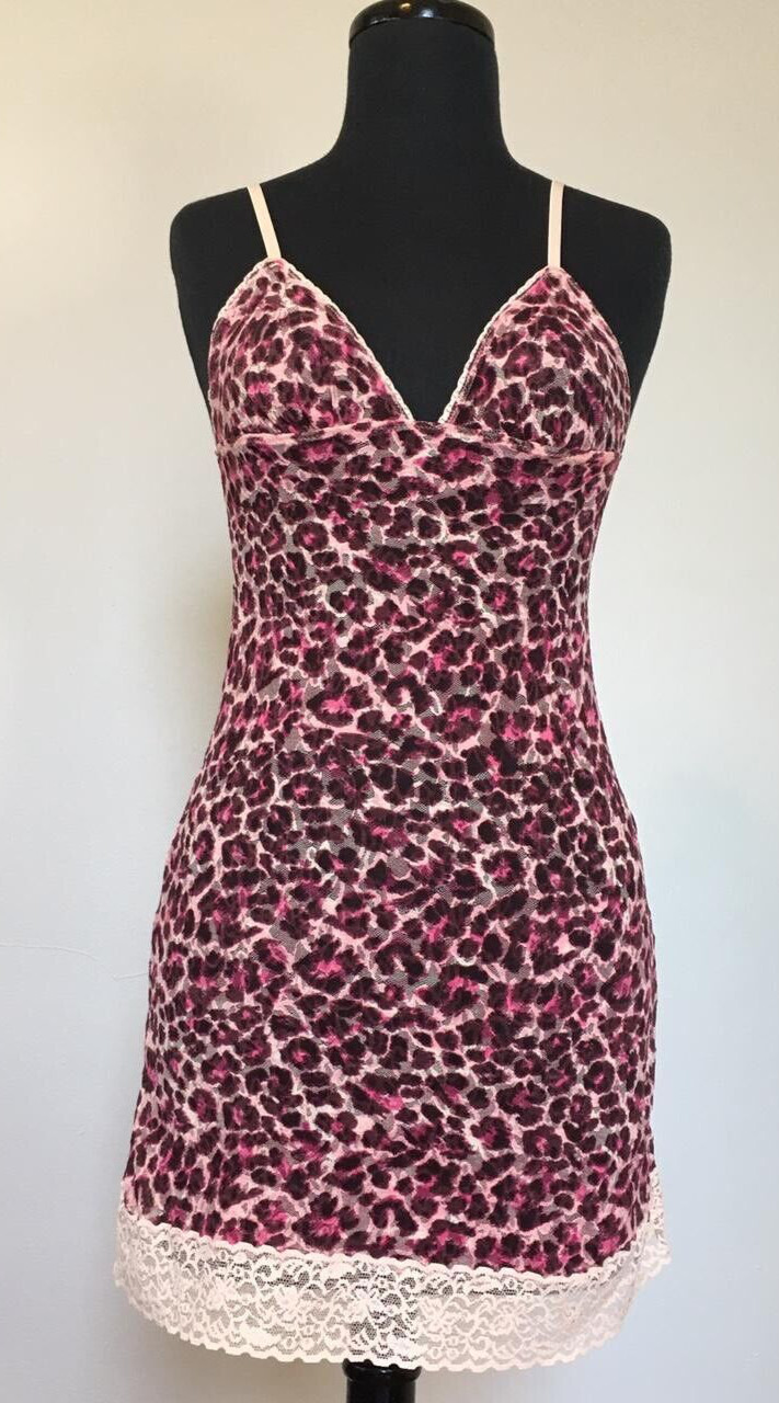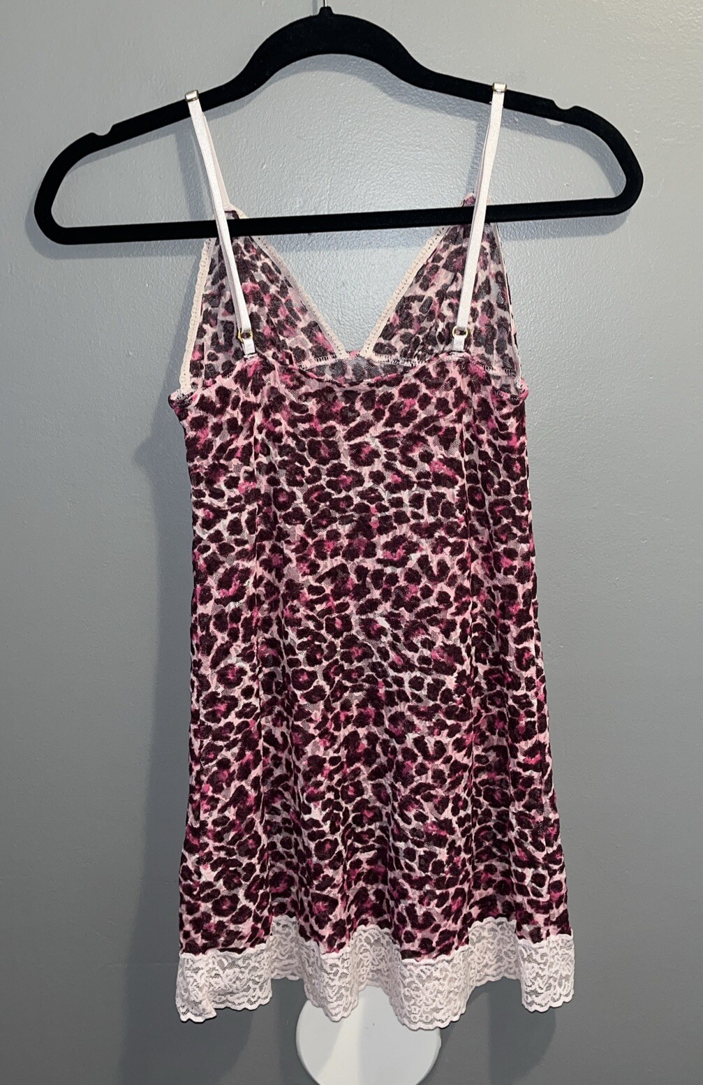 Victoria s Secret Pink Leopard Lace Chemise Womens M Babydoll Nightie Slip