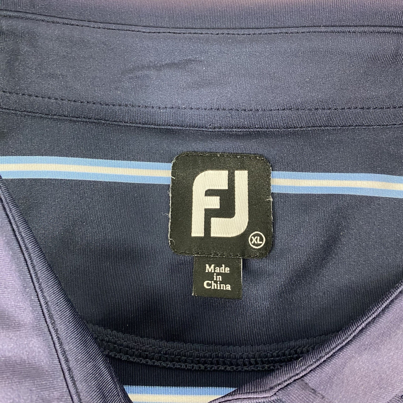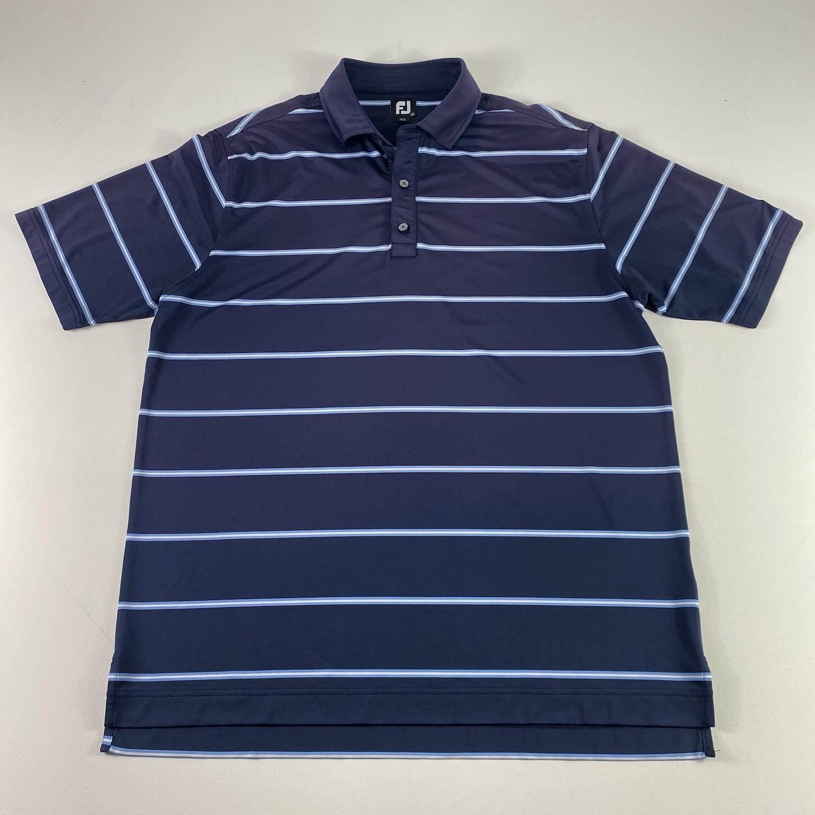FootJoy Polo Shirt Mens XL Blue White Striped Golf Performance Short Sleeve