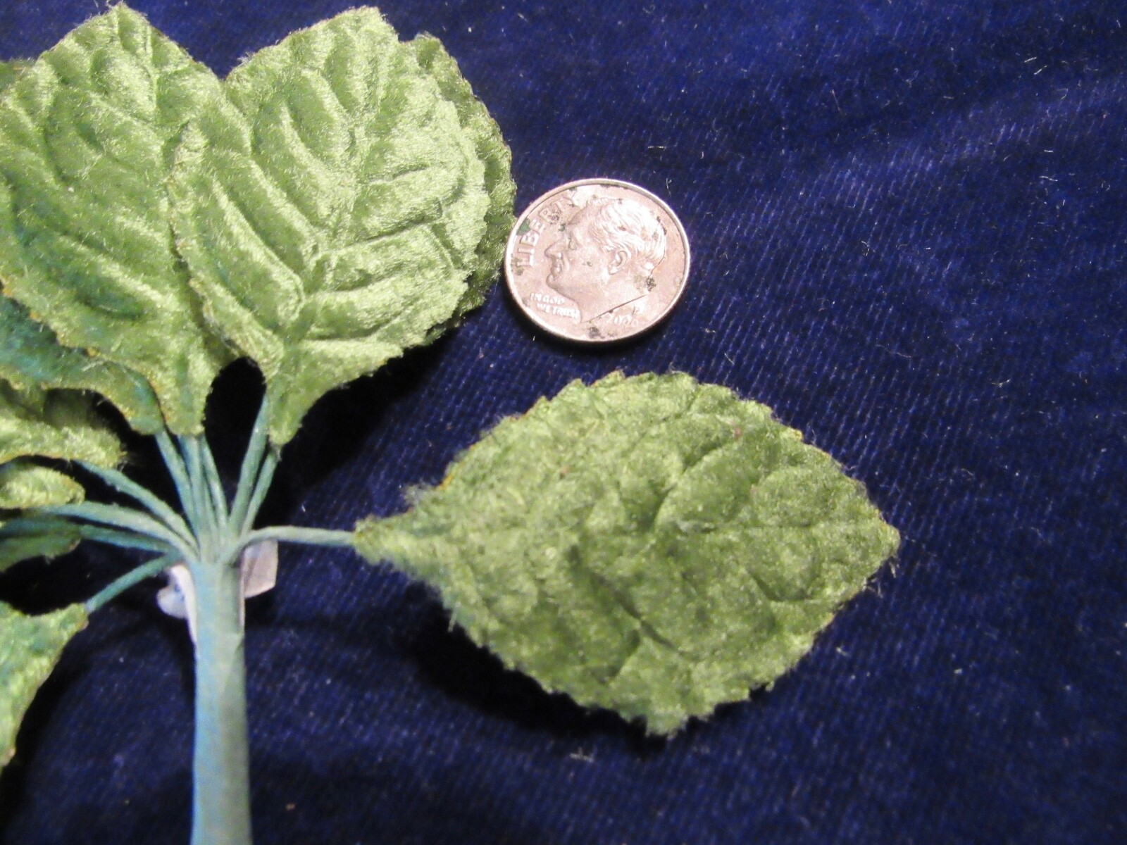 Vintage Green 1 3/4 Velvet Leaves 12pc Bunch Millinery Artificial Leaf Lot C11