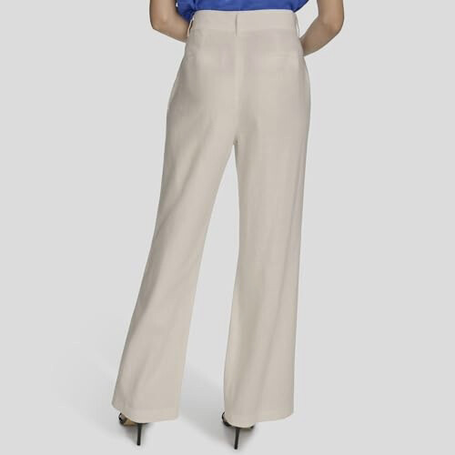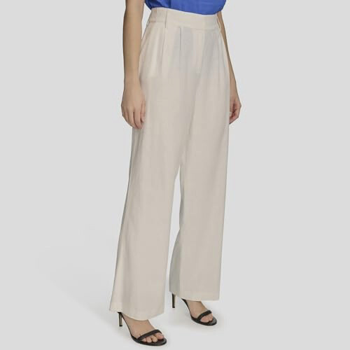 как выглядит Calvin Klein Womens White Linen Blend Pleated Wide-Leg Pants Size 10 фото