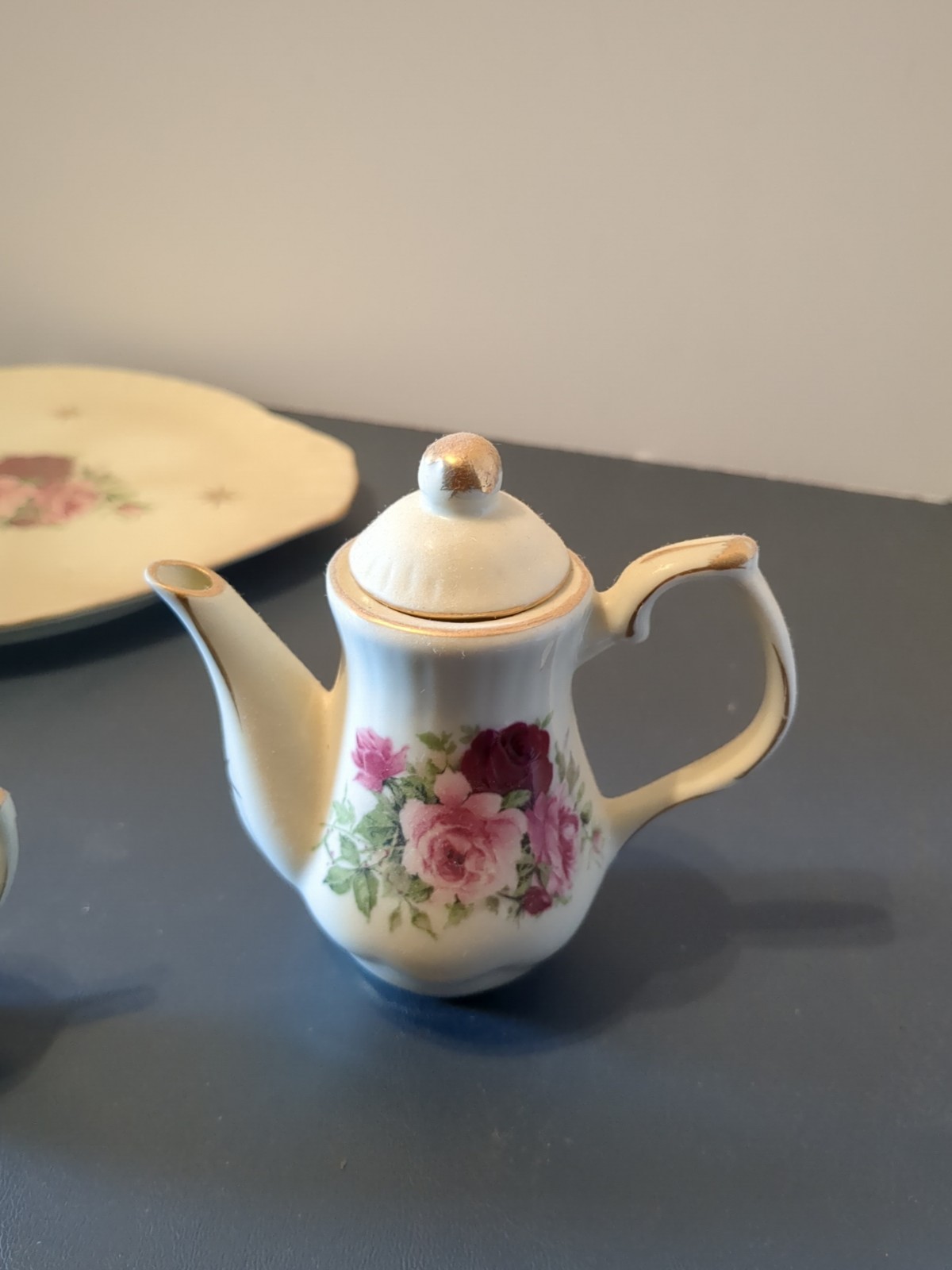 • Baum Bros Formalities Decorative Miniature Tea Set Floral Rose Pattern 10 Pieces