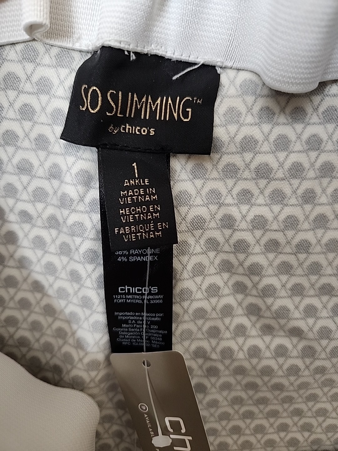 Chicos So Slimming Brigitte Ankle Pants Womens 1 US 8 Black White Pull On NEW