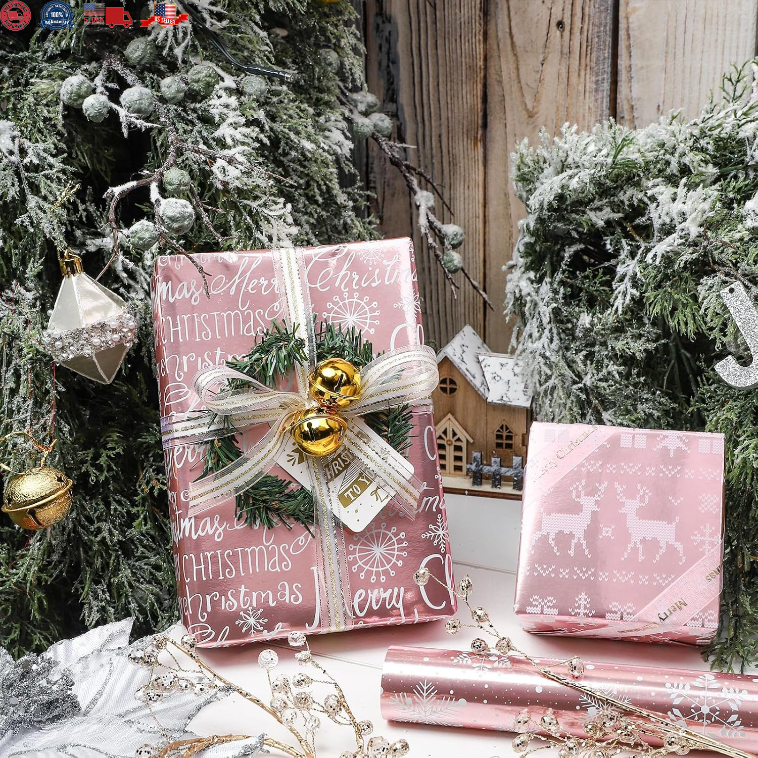 Christmas Wrapping Paper Rolls - 17 Inches X 10 Feet per Roll 3 Rolls - Pink De