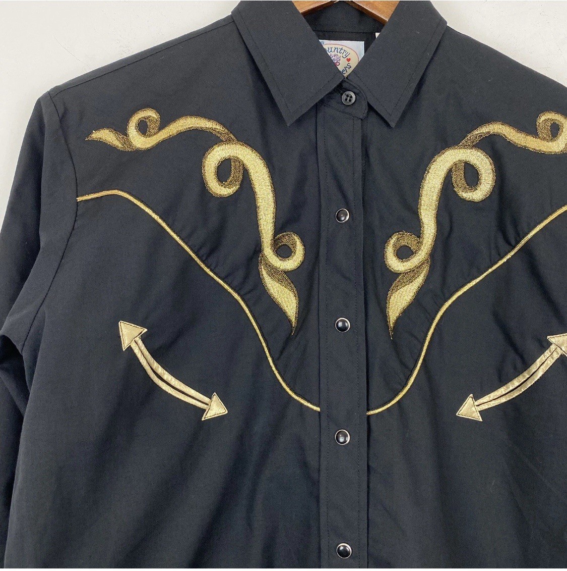 как выглядит UEC VINTAGE ELY COUNTRY CHARMERS BLACK GOLD COUNTRY WESTERN SNAP SHIRT SZ L фото