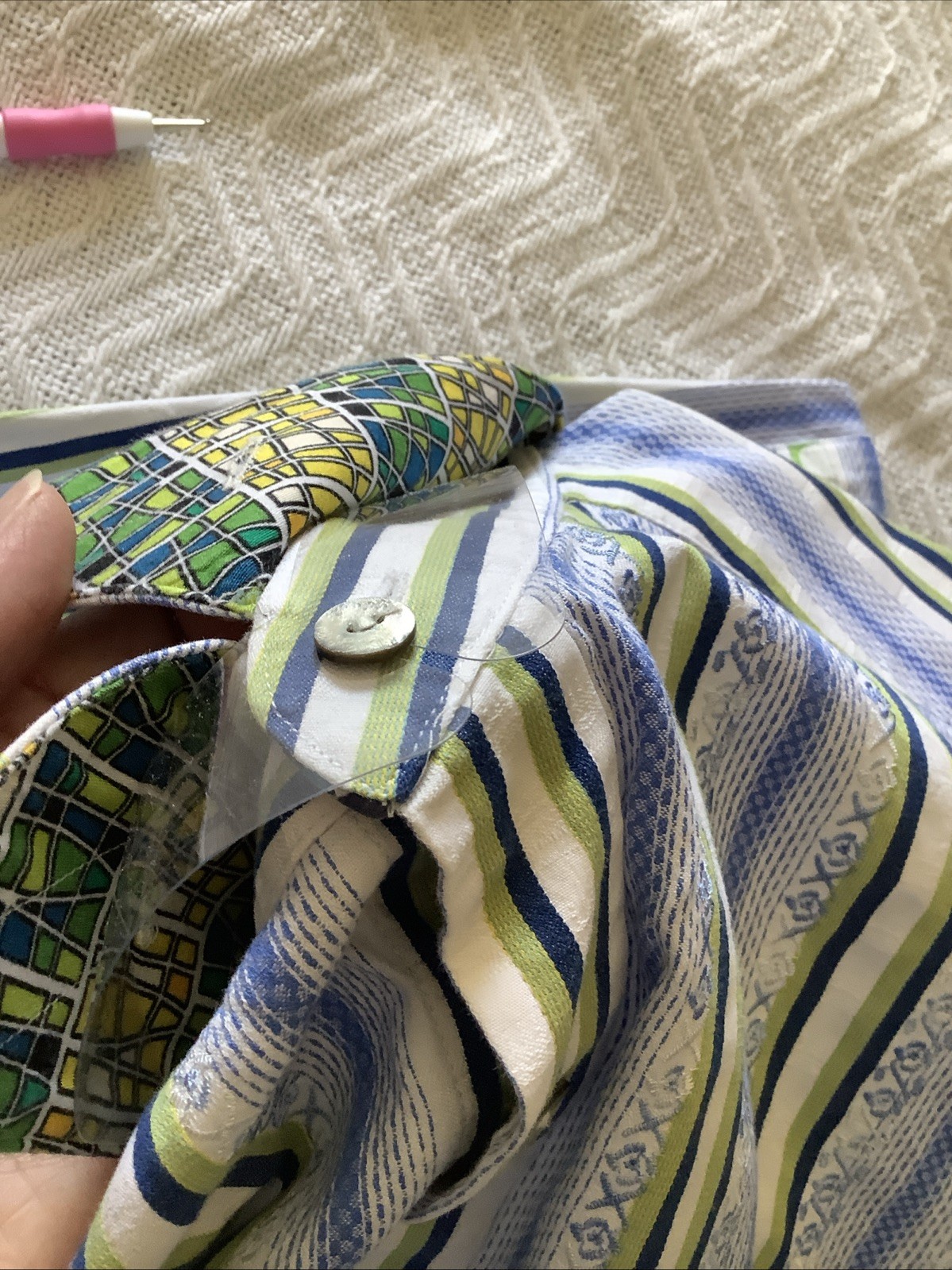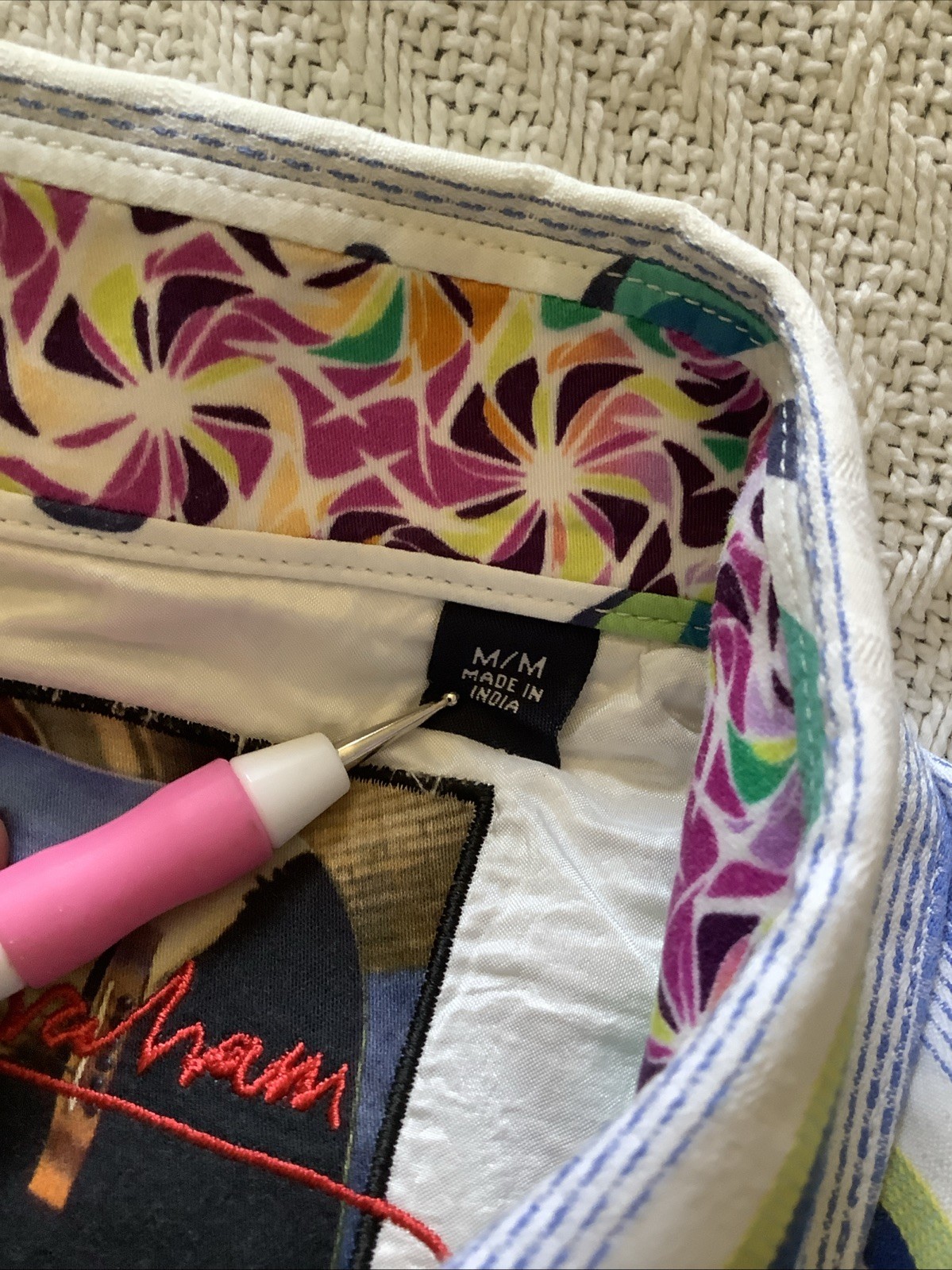Accents: Button, Embroidered