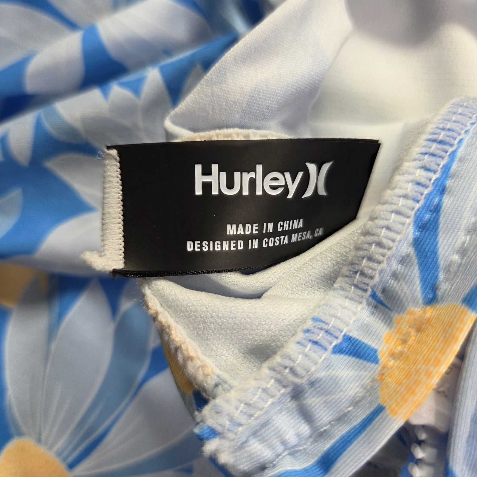 Hurley Swimsuit Womens Large Blue White Long Sleeve Daisy Floral Rash Guard Surf