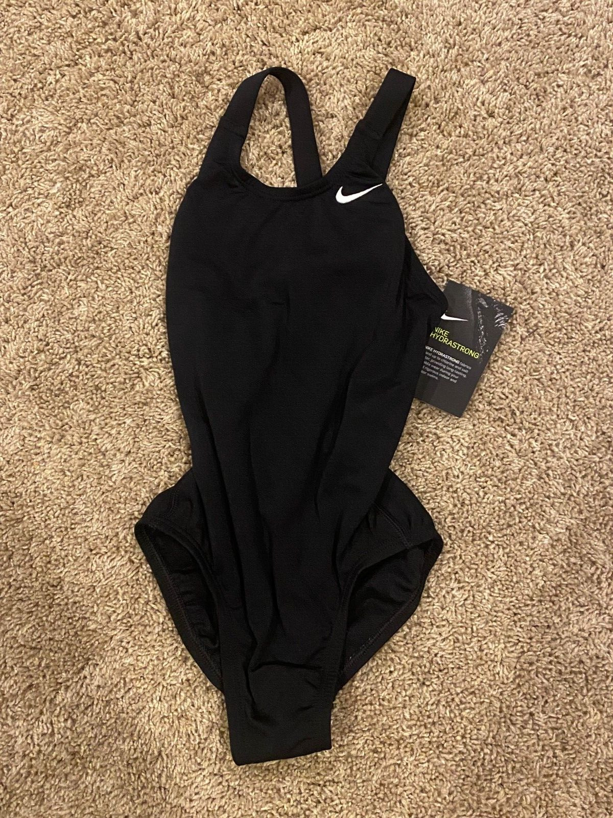Nike Girls Solid Fast Back One Piece Swimsuit sz S Black Small