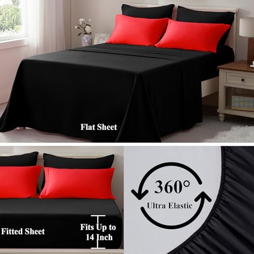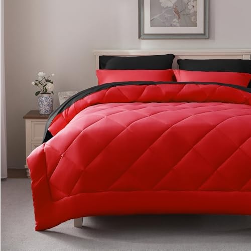 Size Bed in a Bag 7 Pieces - Red and Black Bed Comforter Set Full Red/Black