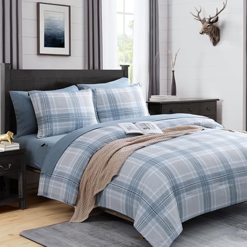 MaiR ve Plaid Comforter Sets Grid Farmhouse Bedding Set Bed in Full Light Blue
