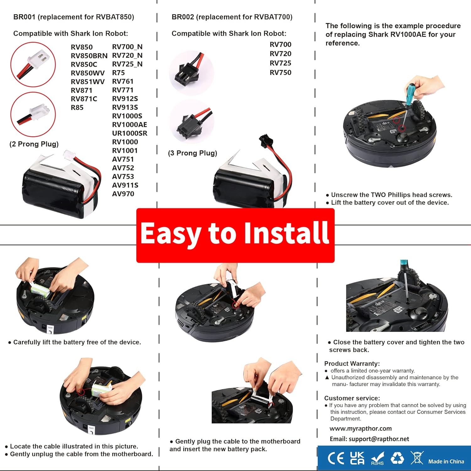 Replacement RVBAT850 Battery for Shark Vacuum ION IQ AI Robot for R75 R85 RV761