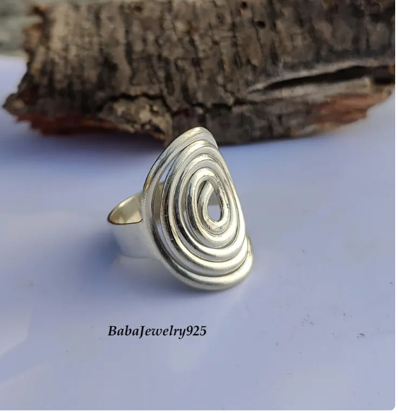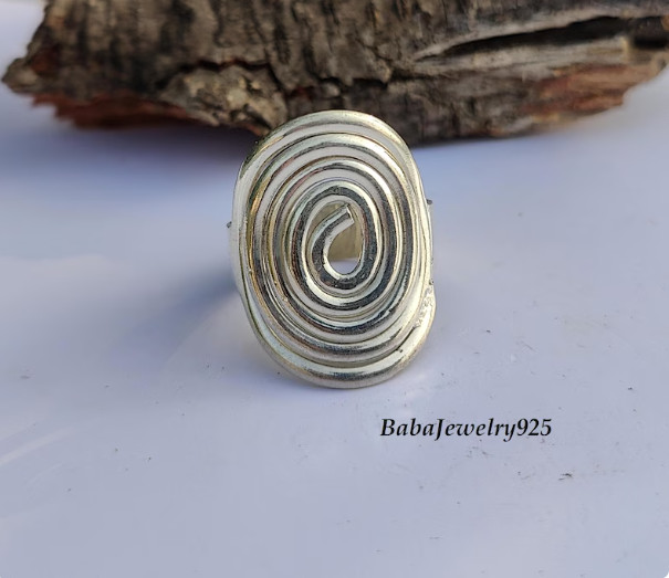 как выглядит 925 Sterling Silver Ring, Hammered Thick Ring, Statement Ring, Multi All Size фото
