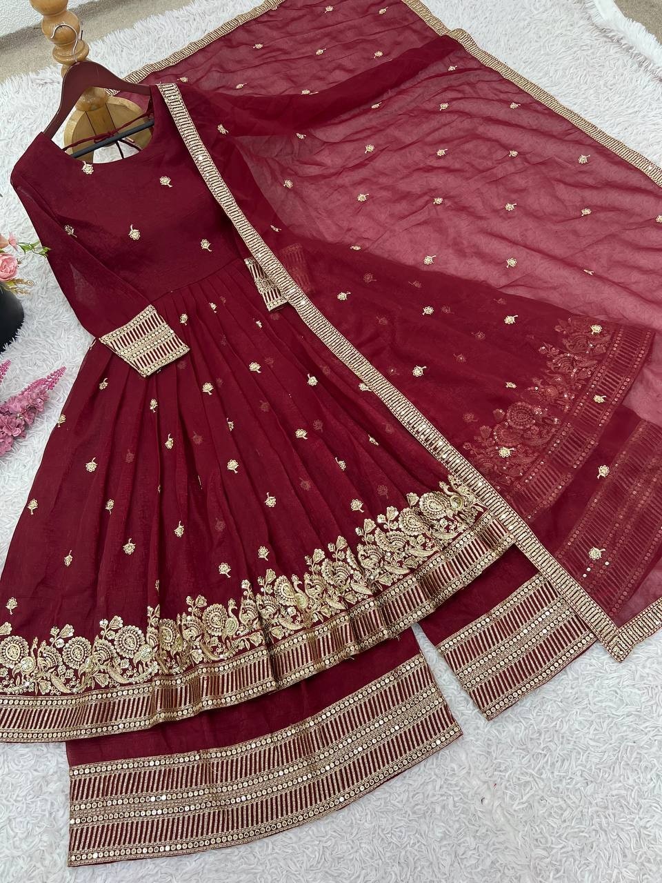 Palazzo Work: Heavy Embroidery Sequence Work With Fully Flair
