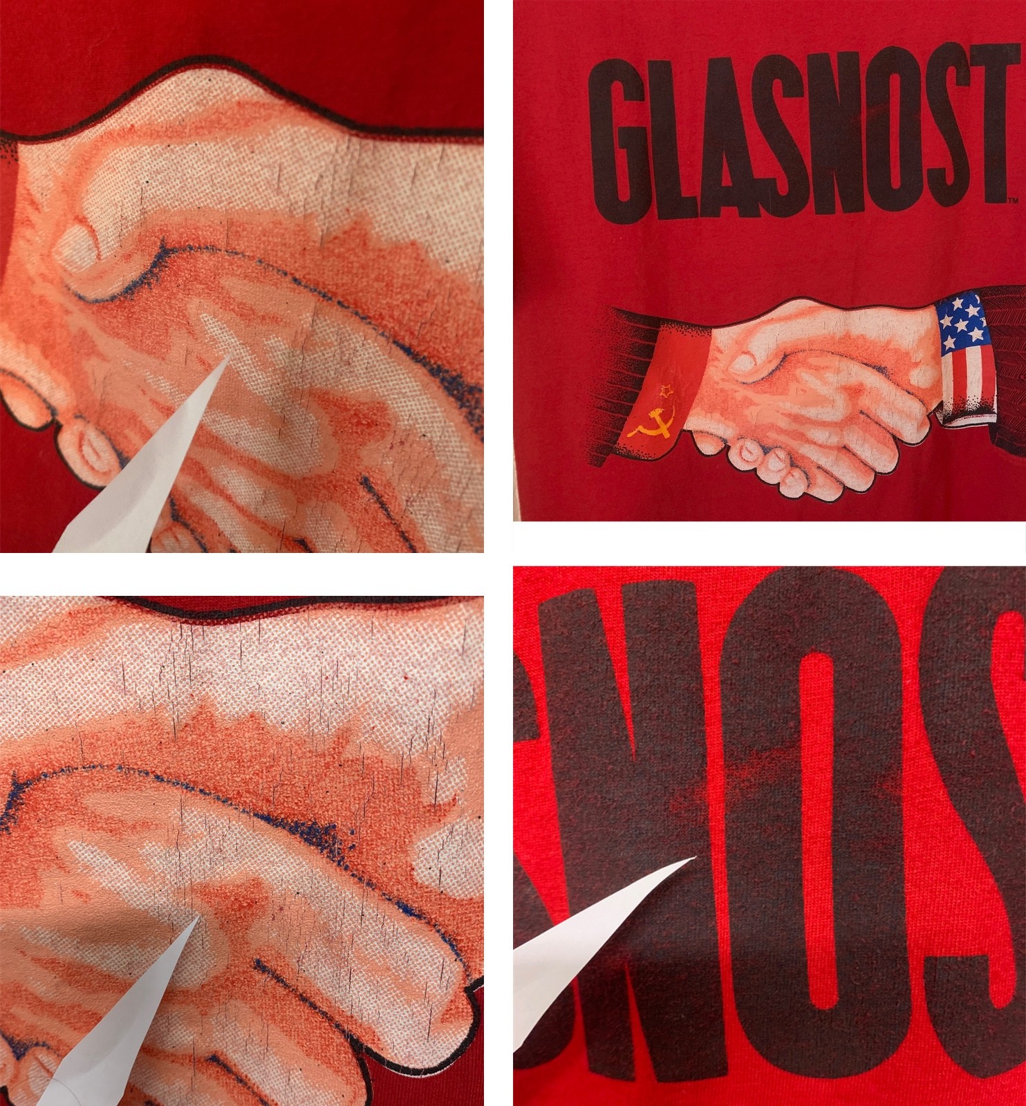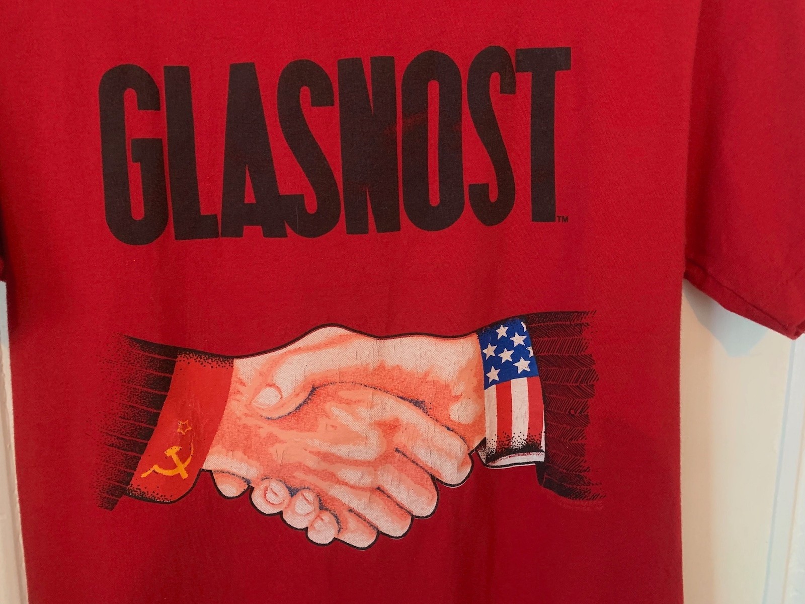 VTG GLASNOST Mens Red Handshake T Shirt M 38-40 Single Stitch Sleeves Jerzees