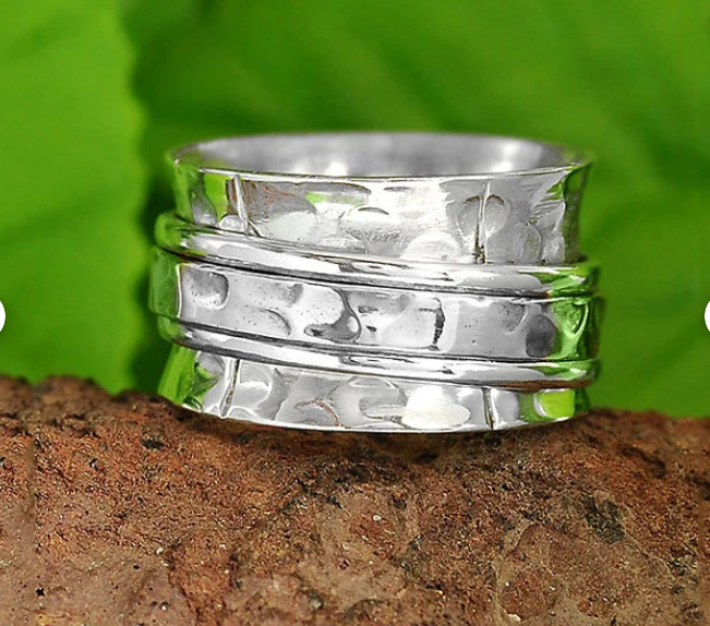 Wide Band Spinner Ring, Fidget Ring, 925 Sterling Silver Rings for All Size