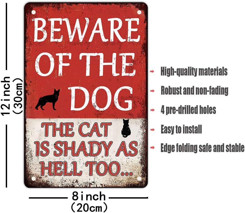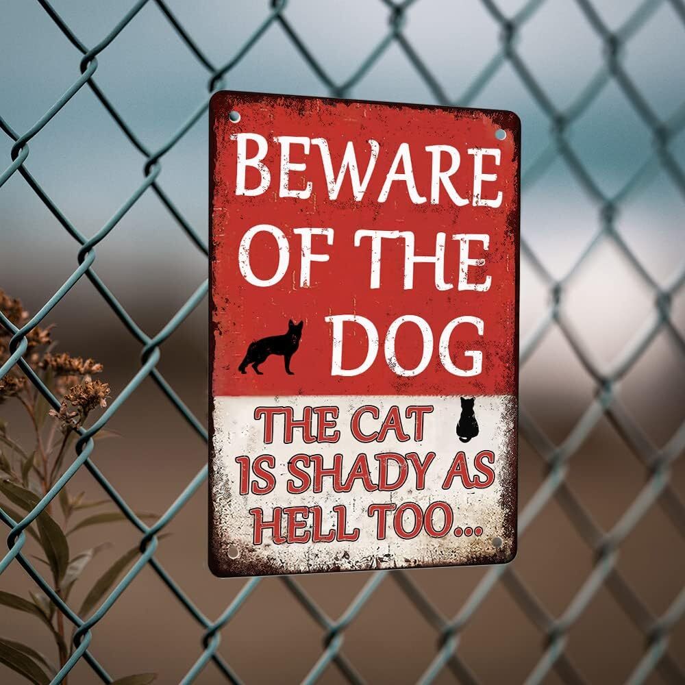 Beware Dog Sign - Funny Cat Shady Too Metal Signs 8x12 Inches