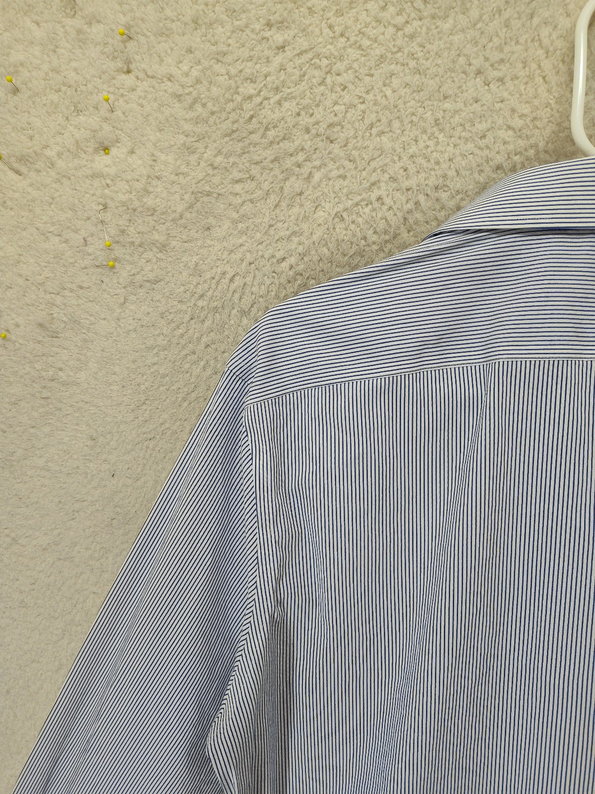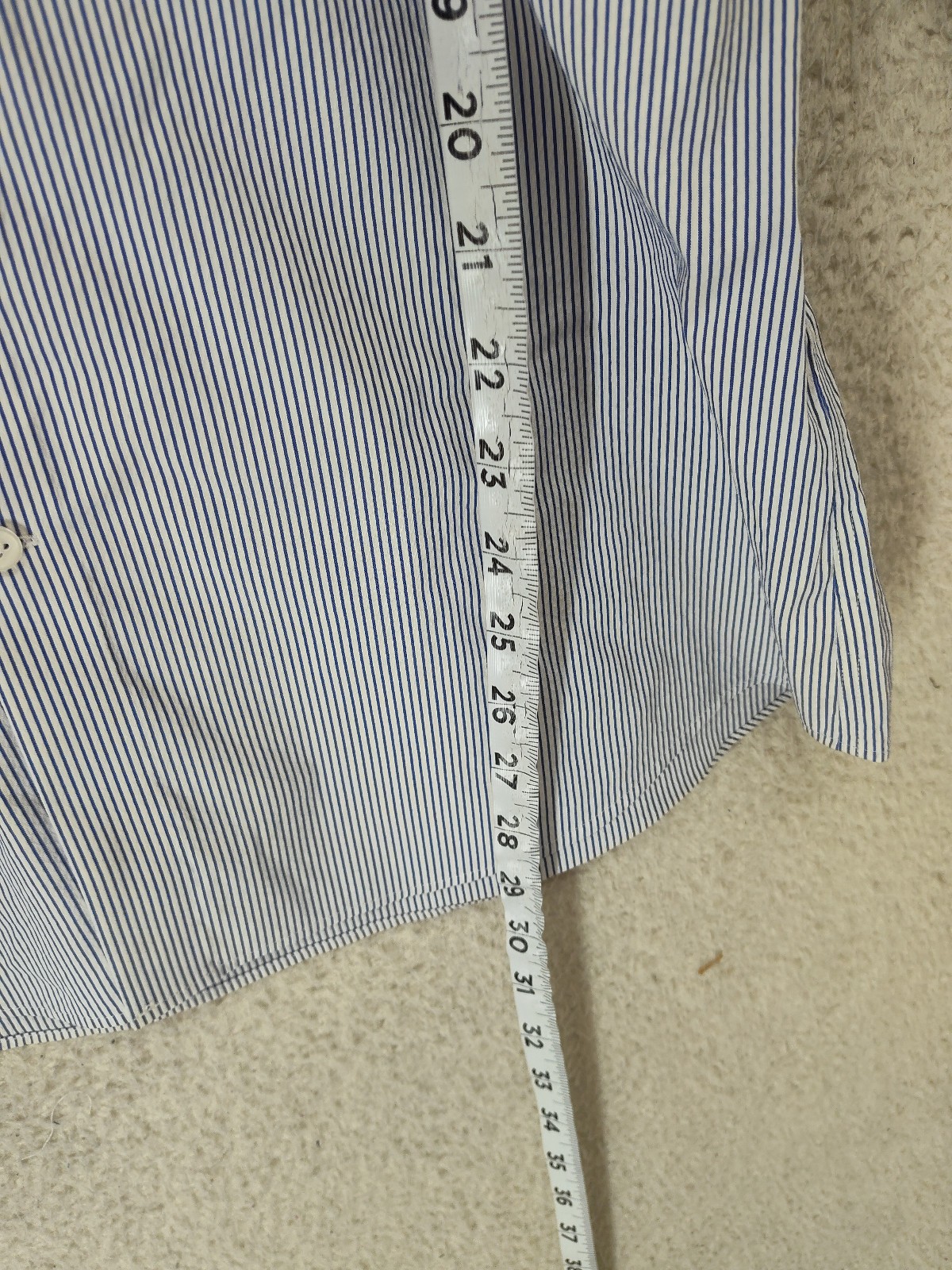 как выглядит Michael Kors Men Shirt Large Blue Striped Cotton Blend Long Sleeve Button Down фото