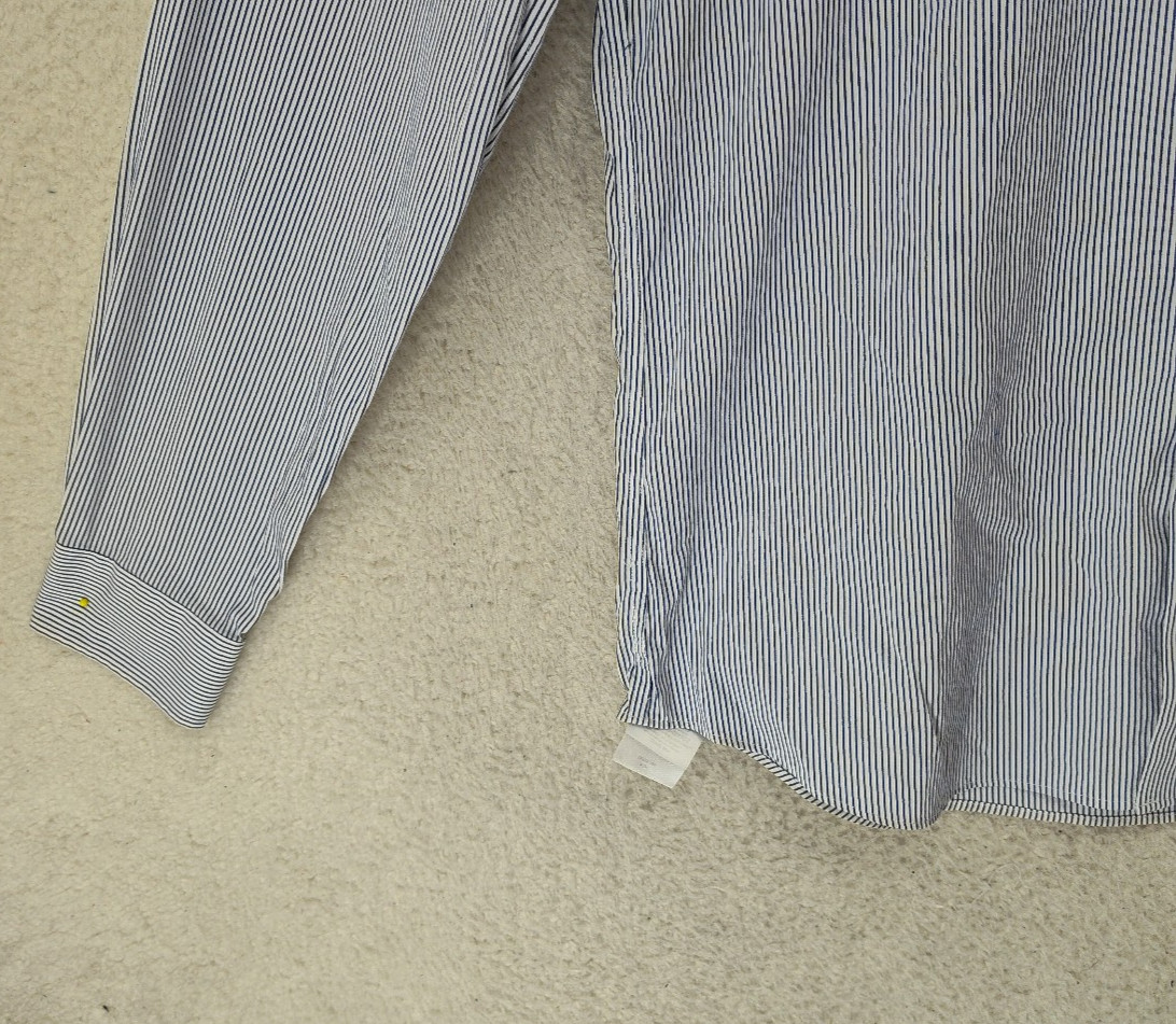 Michael Kors Men Shirt Large Blue Striped Cotton Blend Long Sleeve Button Down