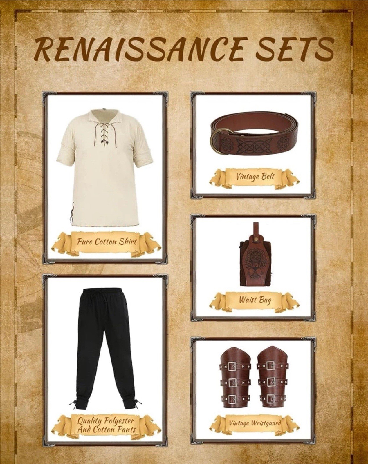 Viking Renaissance Medieval Cosplay Steampunk Unisex brown Pants Mens New XL