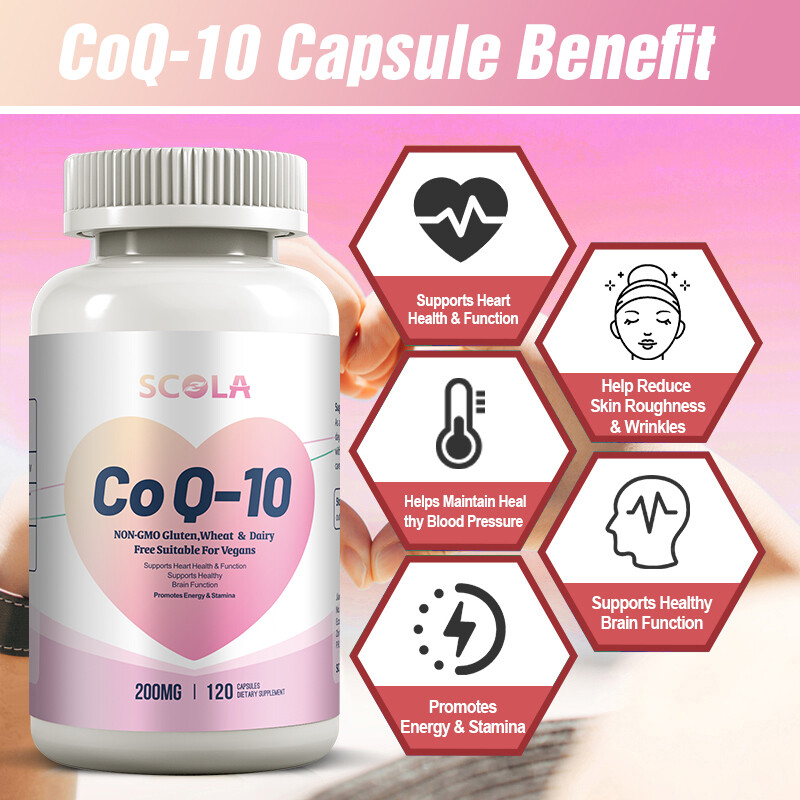 CoQ10 200mg, 120 PCS, Vegetarian Capsules, Non-GMO Coenzyme Q10 Heart Support