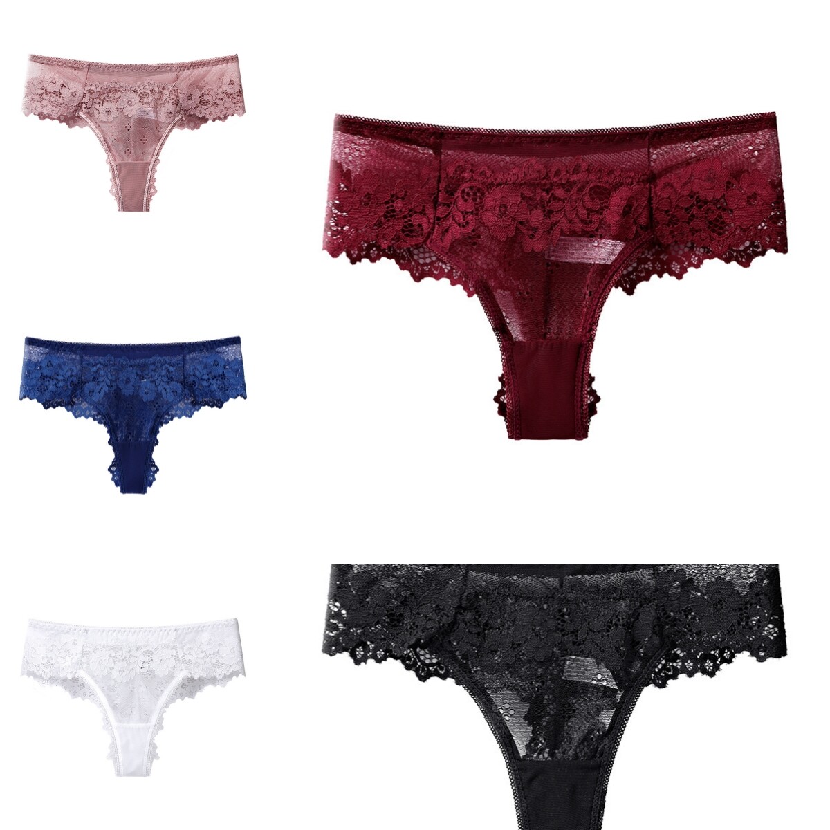 5- Pack Lot Women Lace Thong G string Panties Briefs Sheer See Through Underwear