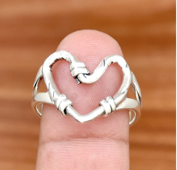 как выглядит Beautiful Heart Ring, Solid 925 Sterling Silver Heart Ring, Handmade All Size фото
