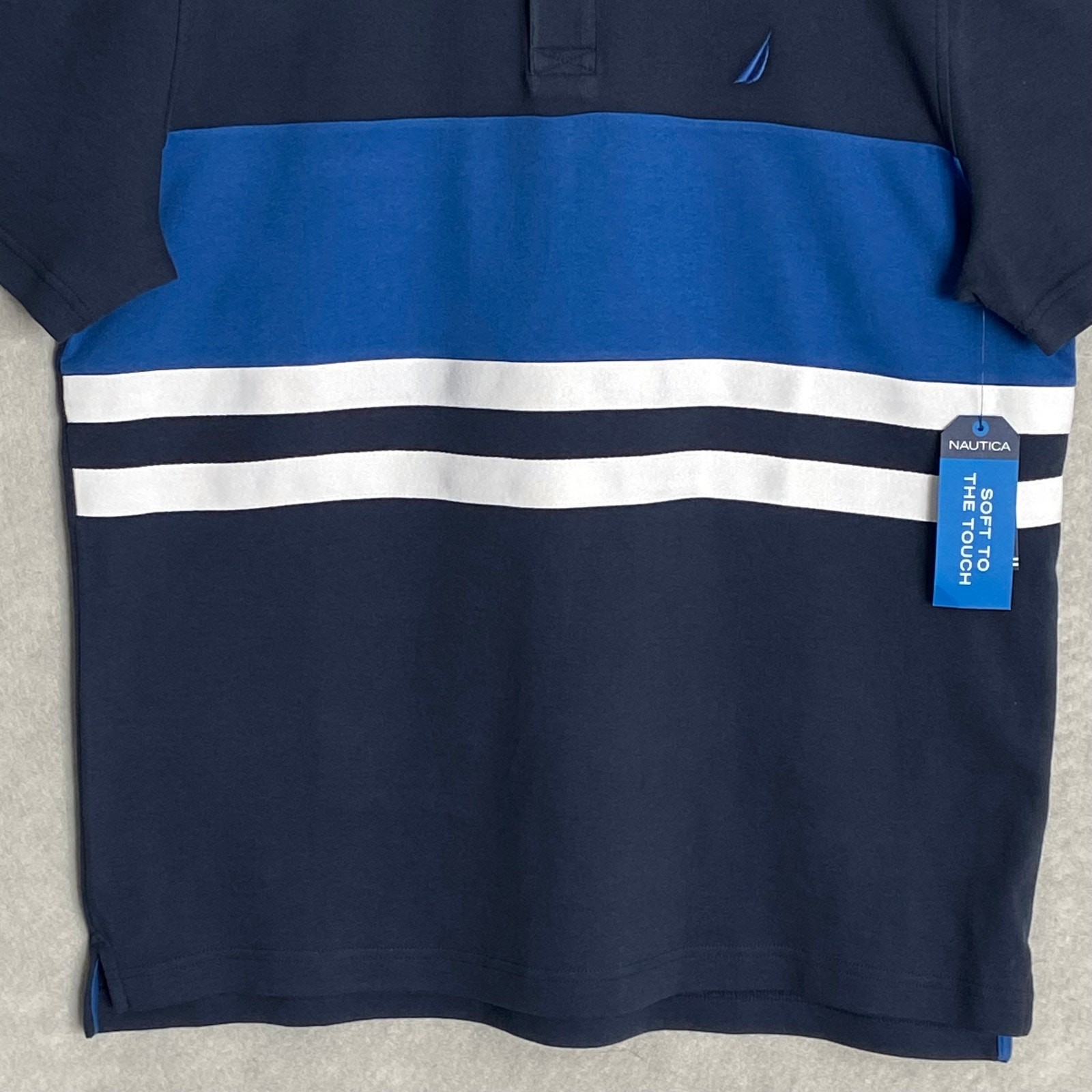как выглядит Nautica Mens Medium Polo Shirt Cotton Short Sleeve Blue White Colorblock NEW фото