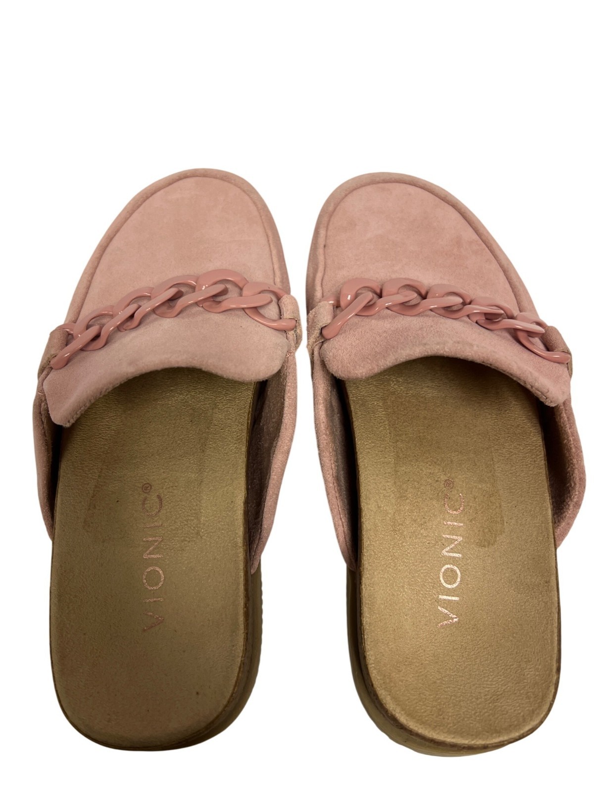 Vionic Georgie Women's Mule Clog Casual Pink Leather Chain Detail Size 5 Comfort