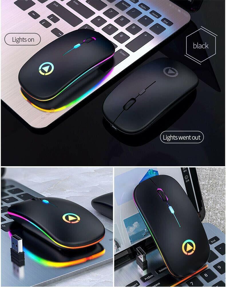 2.4GHz Wireless Optical Mouse USB Rechargeable RGB Cordless Mice For PC Laptop