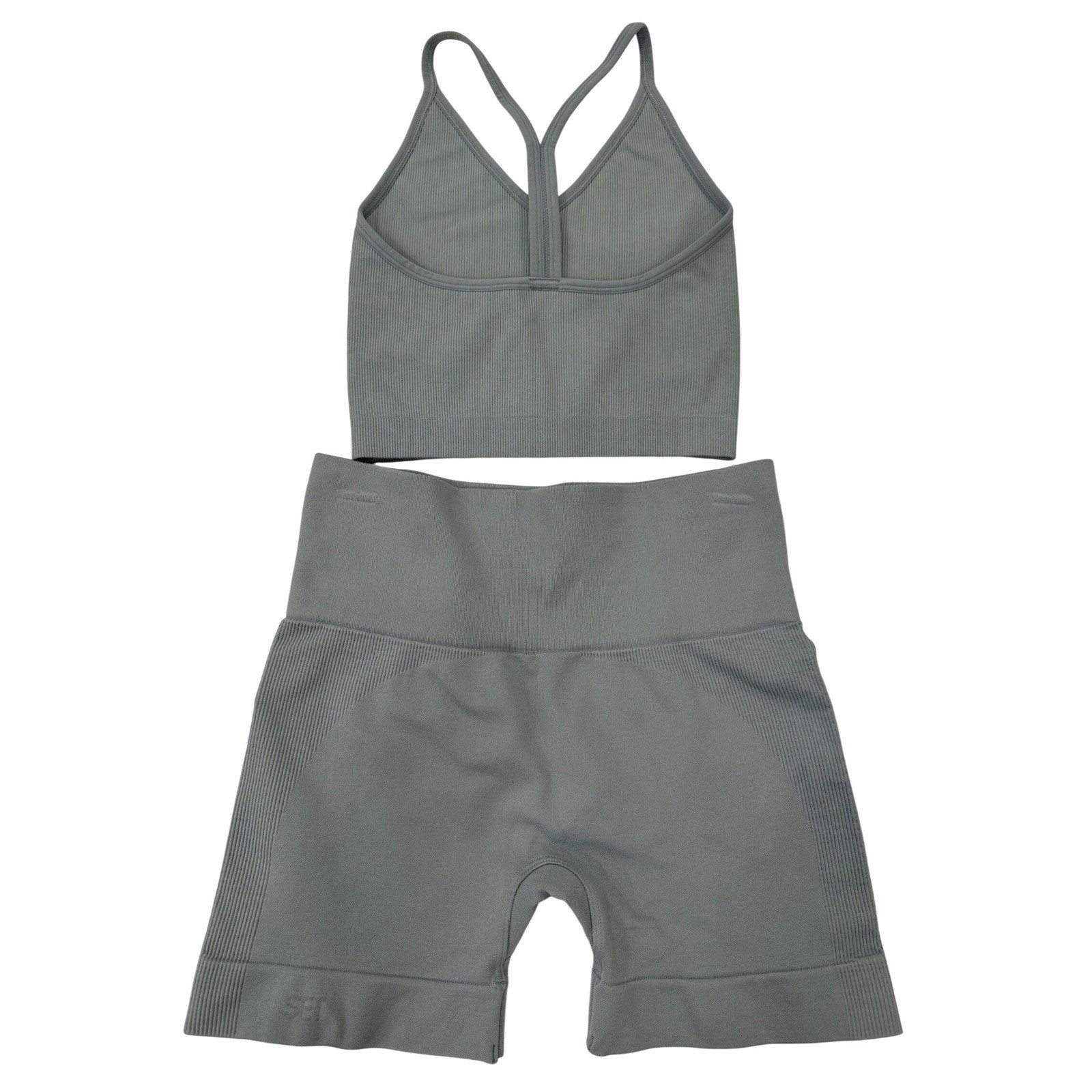 SET ACTIVE Ribbed Seamless Bra Top Sculptflex Shorts Set Athletic Blue S/M