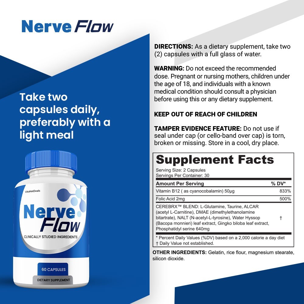 Nerve Flow Capsules, Max Strength, NerveFlow All Natural Supplement 1 pack