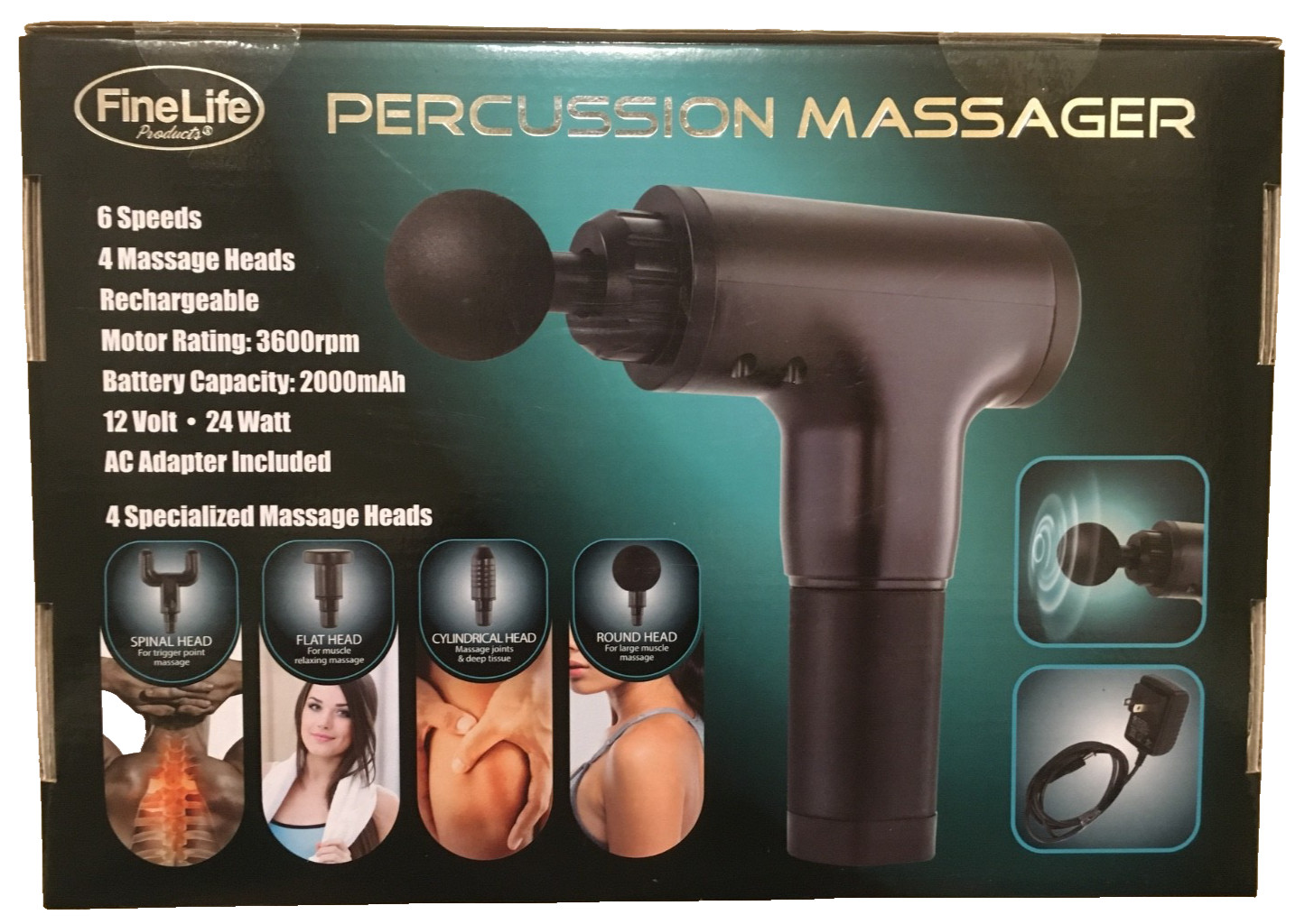 Percussion Massager Final Life Products 6-speeds 4-massage heads