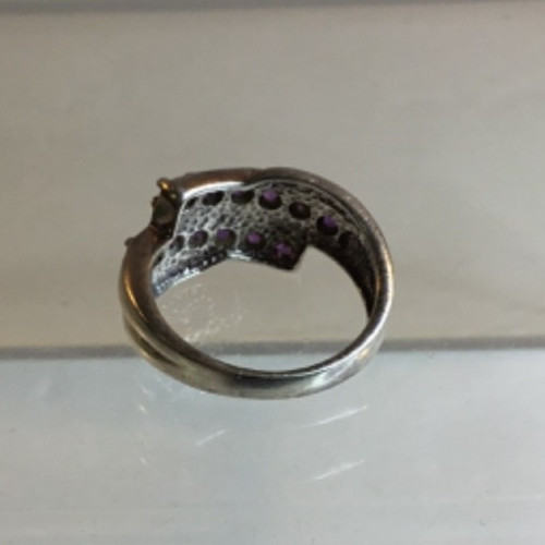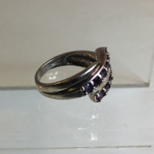 как выглядит Vintage Sterling with 12 Amethysts Ring Size 7.75 фото
