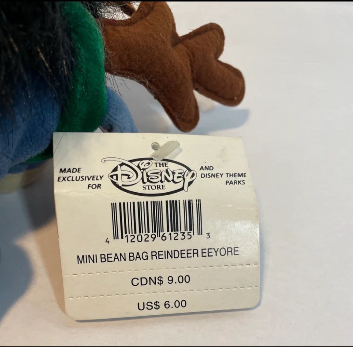 • NWT Vintage Disney Store Eeyore As A Reindeer Bean Bag Plush Christmas NEW