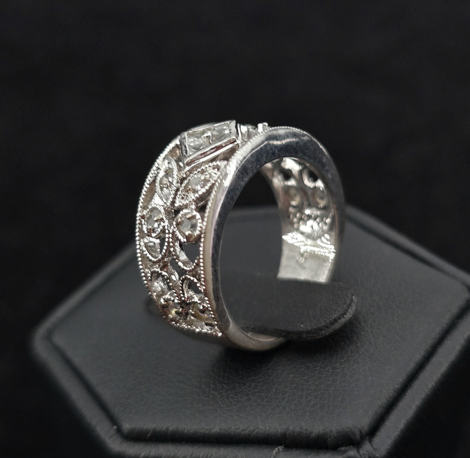 как выглядит 925 Sterling Filigree Band Ring 5.5 Floral Openwork Glass Stone Accents Milgrain фото