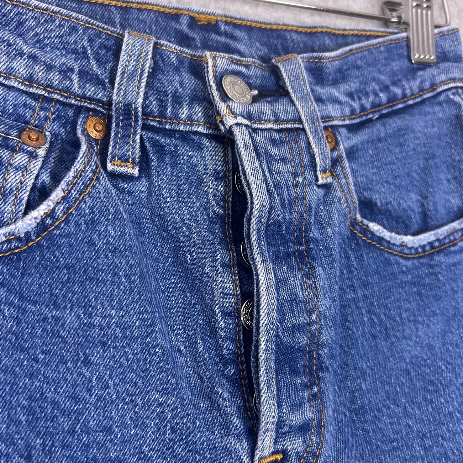 как выглядит Levis 501 S Premium Jeans Womens 24x30 Raw Hem Big E Button Fly 90s Skinny VTG фото