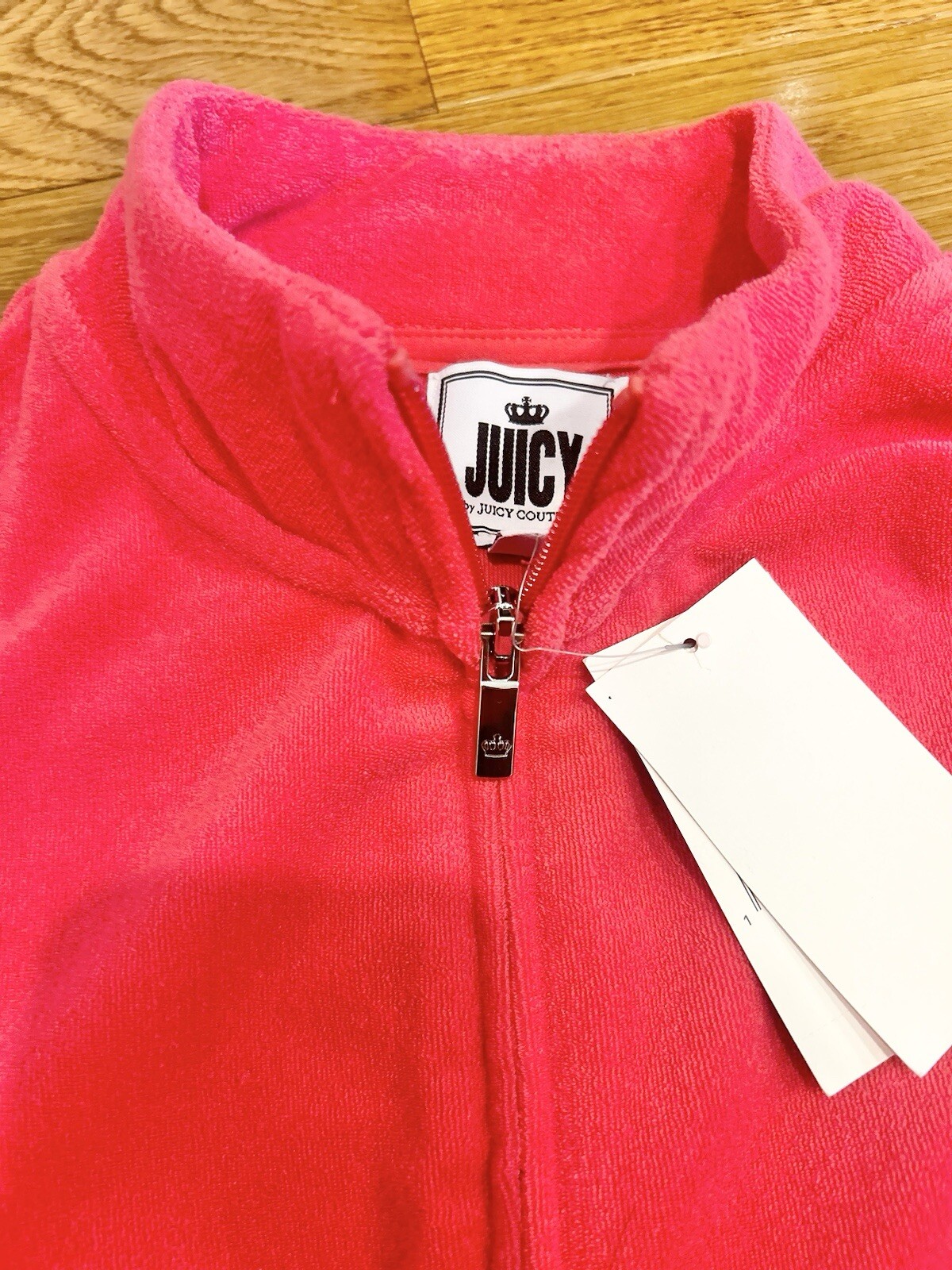как выглядит Juicy Couture Y2K French Terry Track mock neck Jacket with iconic Juicy Crown L фото