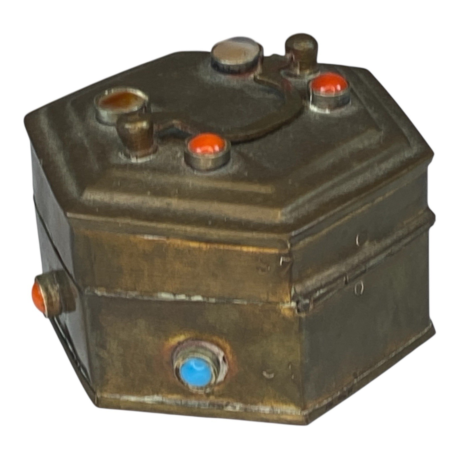 • Vintage Brass Hinged Hexagon Mini Trinket Box Colored Glass India