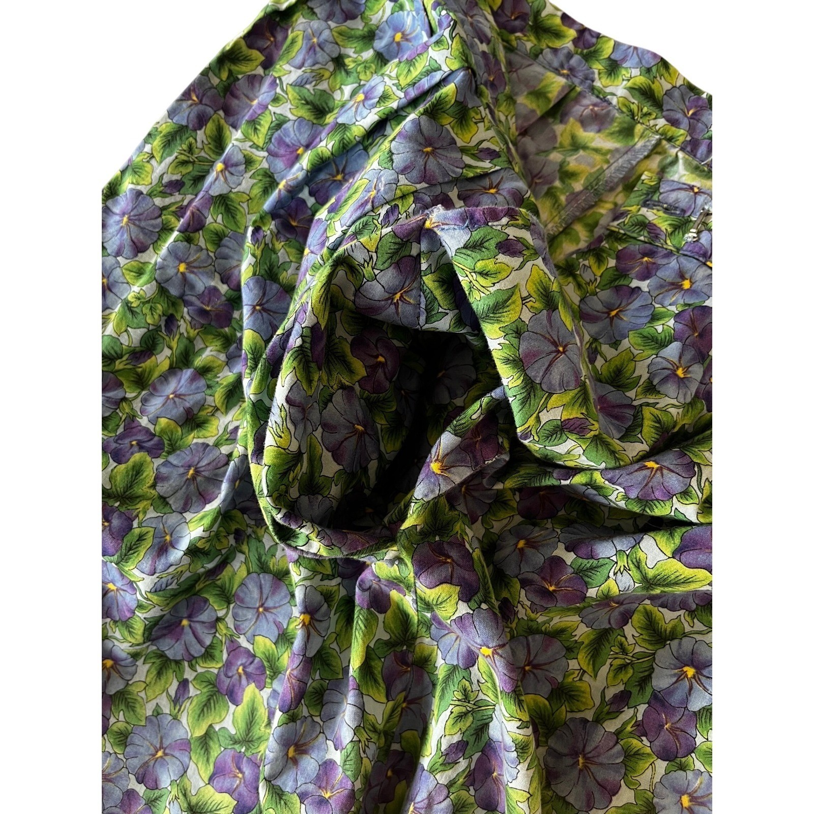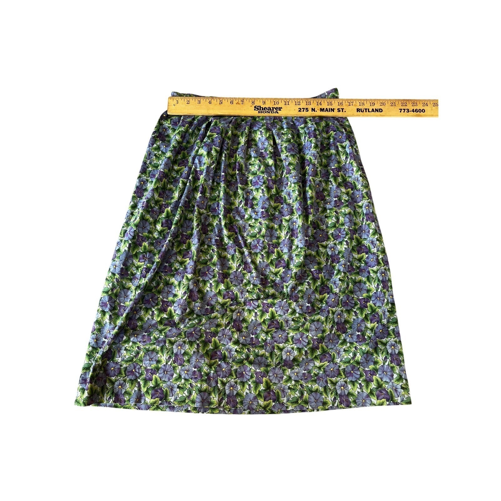 Vintage Handmade Floral Print Skirt Purple Green Midi A-Line Skirt Size M/L