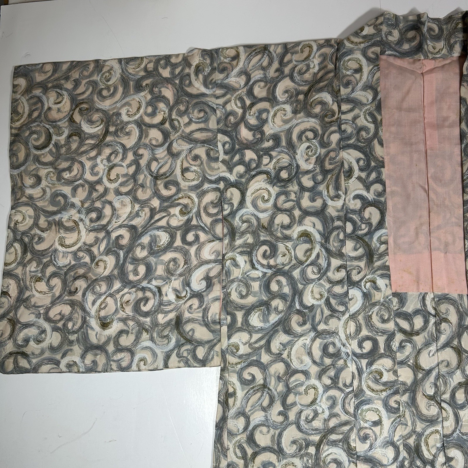 как выглядит Vtg Japanese Haori Kimono Robe Silk Cream Gray Whirlpool Waves Print Lined фото
