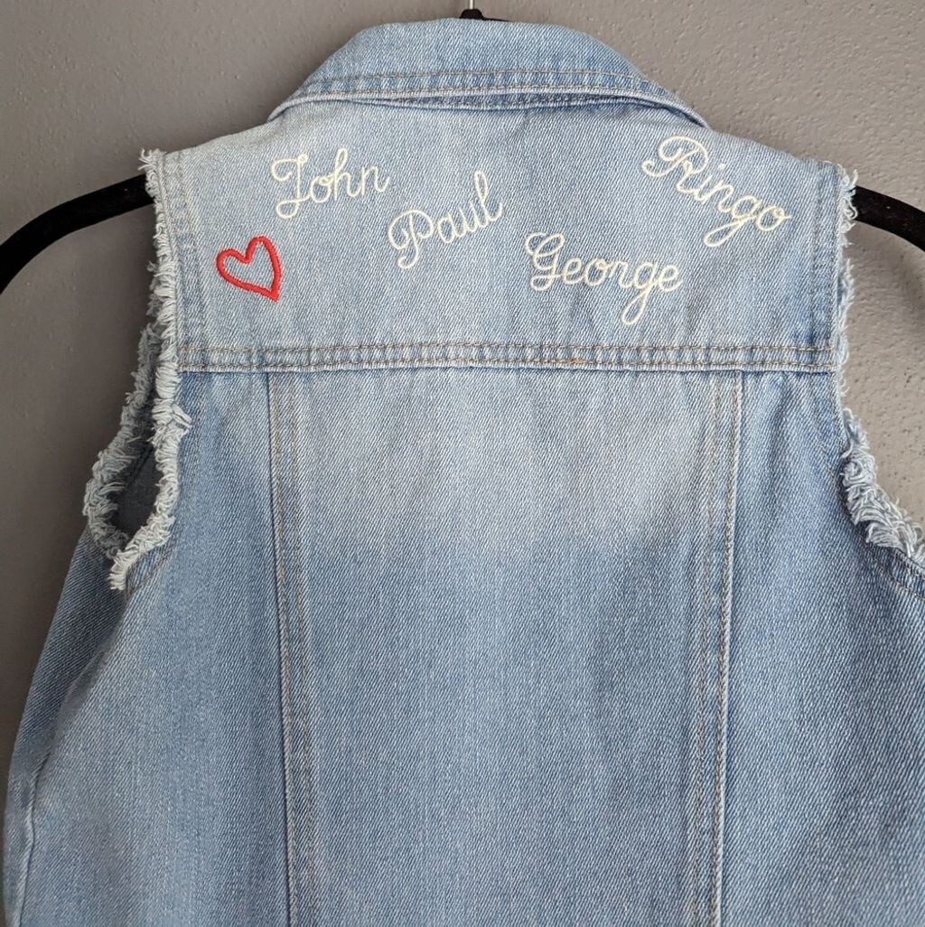 Kids junk food jean vest. The Beatles theme jean vest. Kids large