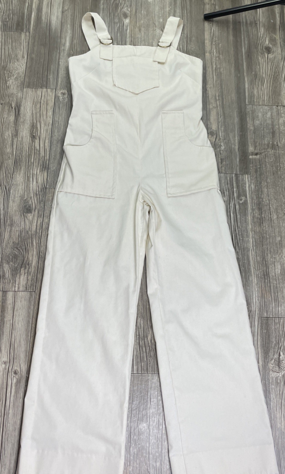 Vintage Gertrude Davenport Natural Cotton Twill Bib Overalls Wide Leg Women's M