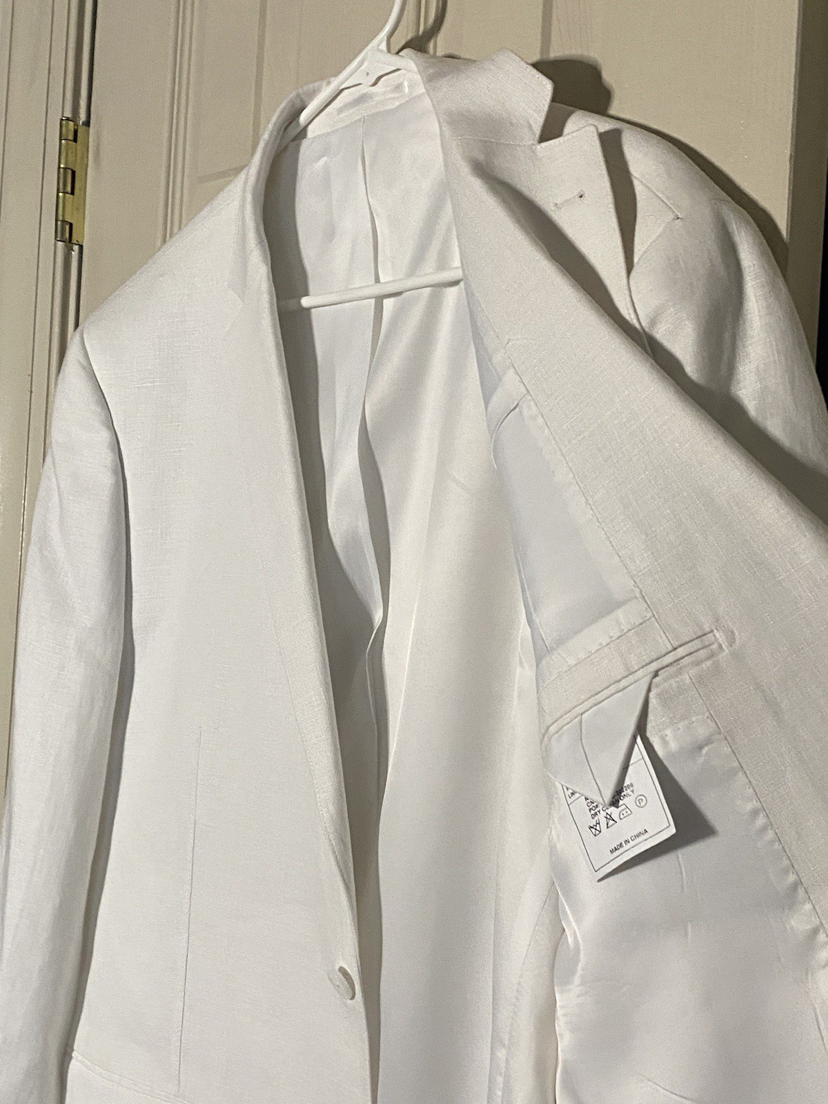 как выглядит Renoir mens White Linen 2pc Lined Suit R 44/38 фото
