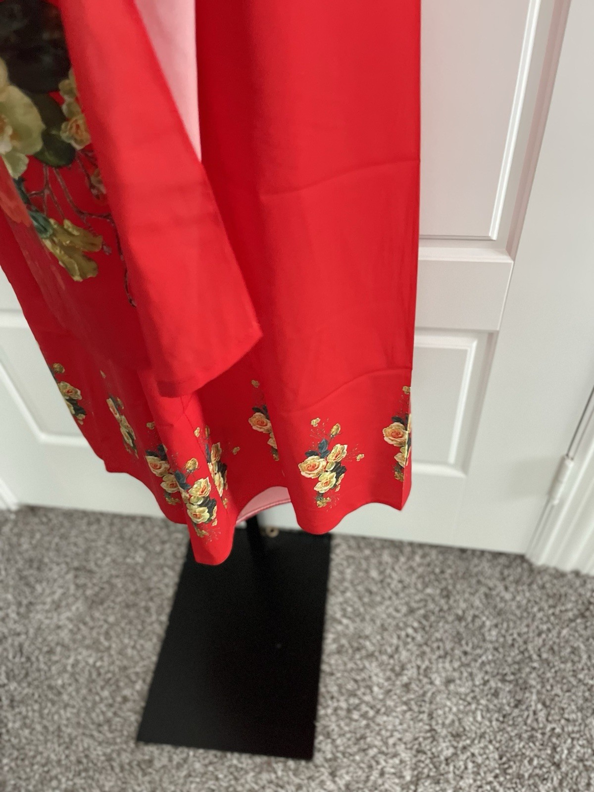 как выглядит XL-Pre-made Ao Dai SET-3D Vietnamese Traditional - Red rose фото