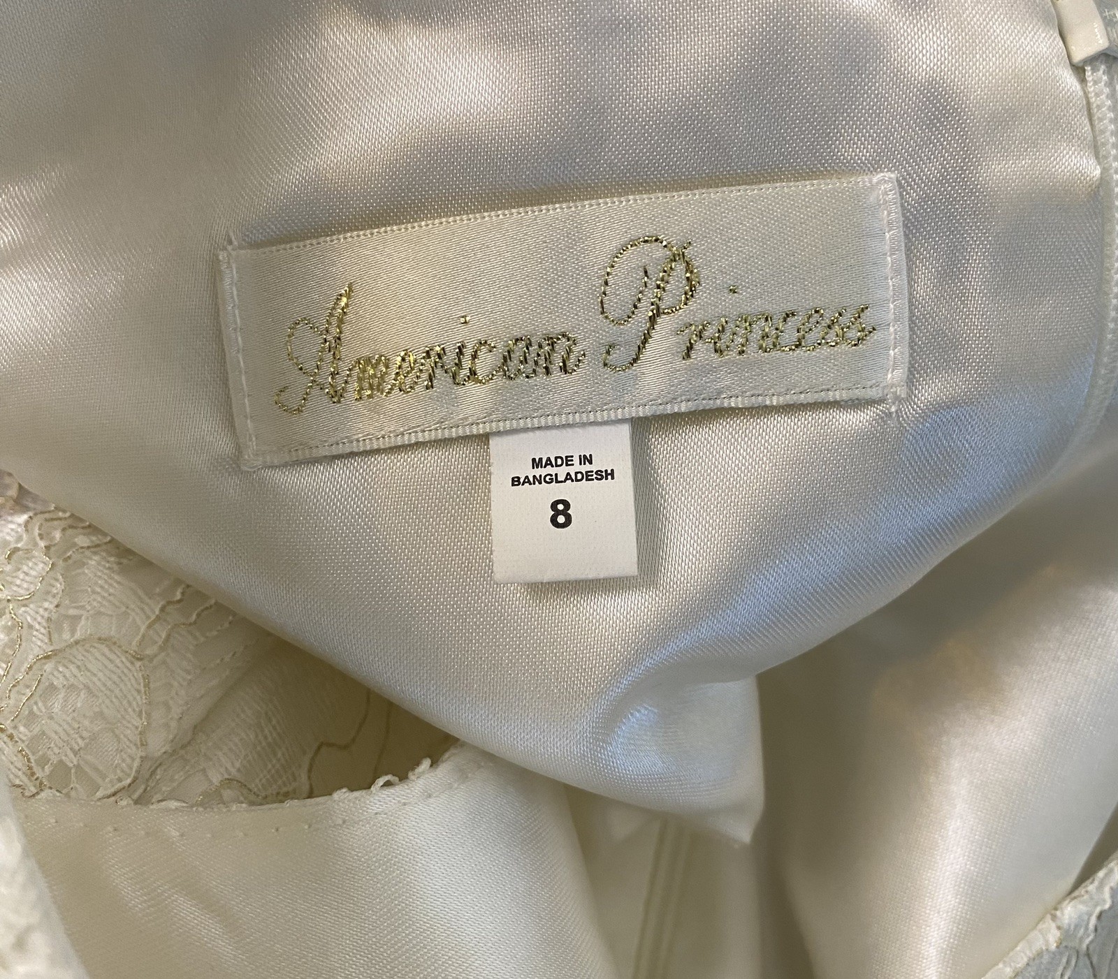 как выглядит American Princess Girls 6 Layer White Wedding Dress Size 8 Crystal Pearls фото